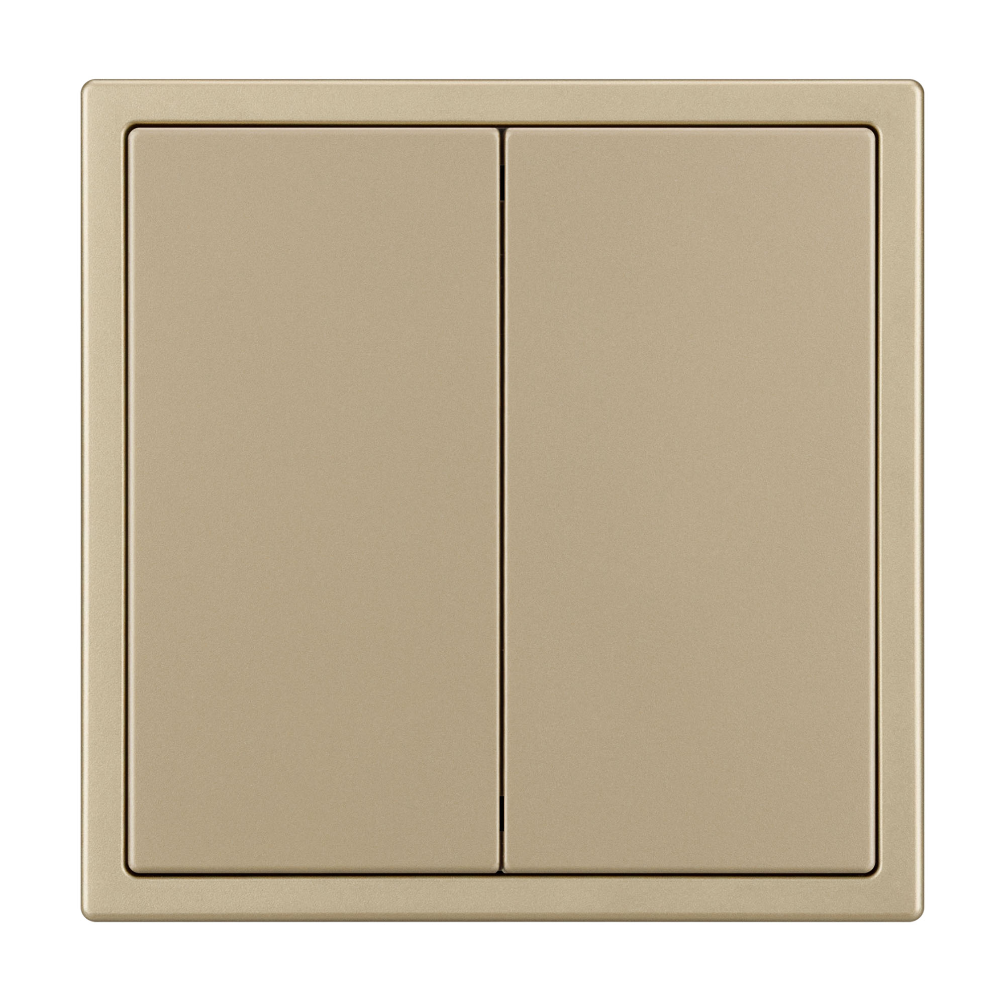 Механизм выключателя света клавишный на 1 пост 2 клавиши (перекрёстный). Цвет - золотой песок, с Soft-Touch покрытием. Без фронтальной рамки. Уровень пылевлагозащиты IP20. Выключатель устанавливается в стандартный круглый подрозетник круглого сечения диаметром 60мм.