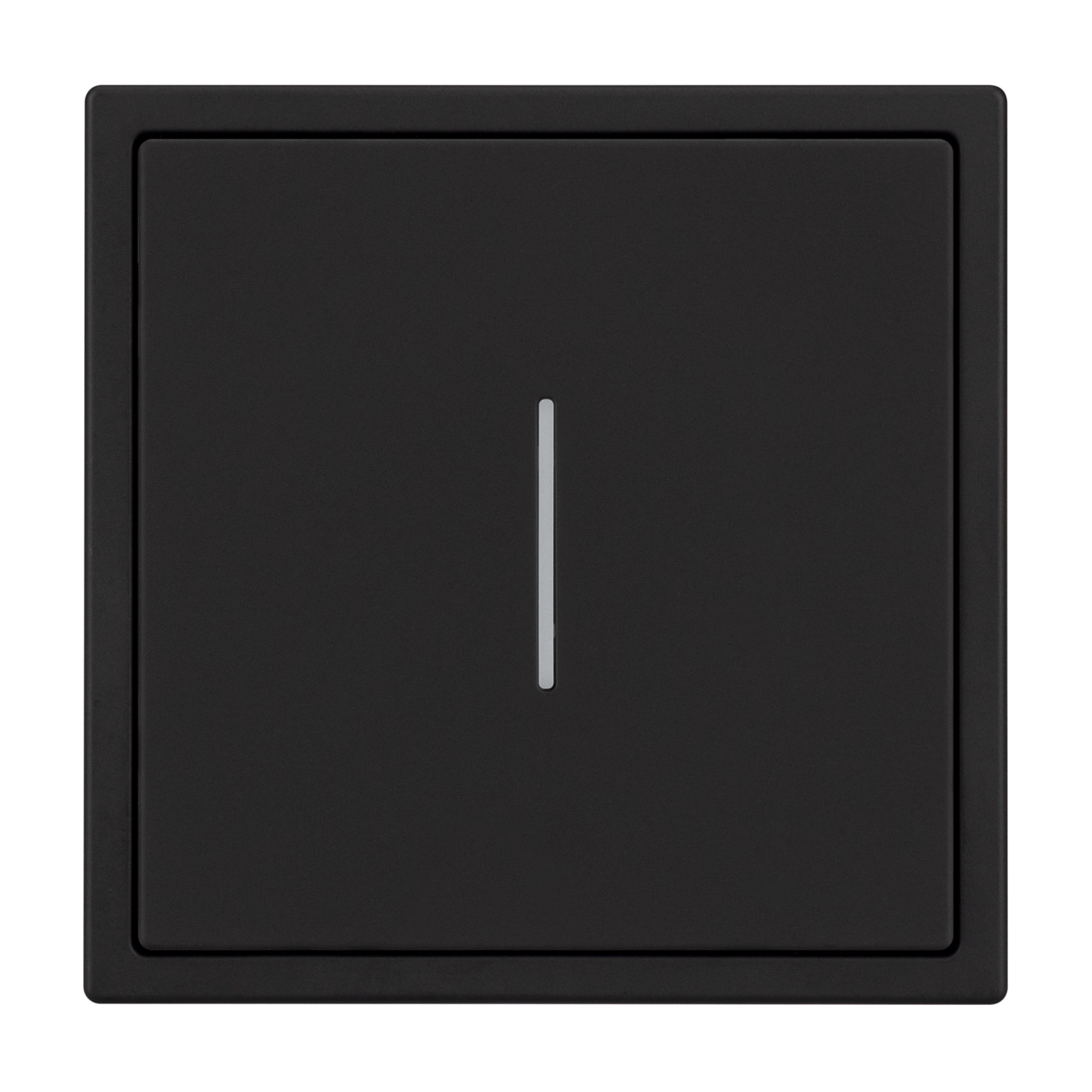 Механизм звонкового выключателя на 1 пост 1 самовозвратная клавиша. Цвет - черный оникс, с Soft-Touch покрытием. Клавиша имеют LED подсветку - cинего свечения. Без фронтальной рамки. Уровень пылевлагозащиты IP20. Выключатель устанавливается в стандартный подрозетник круглого сечения диаметром 60мм.