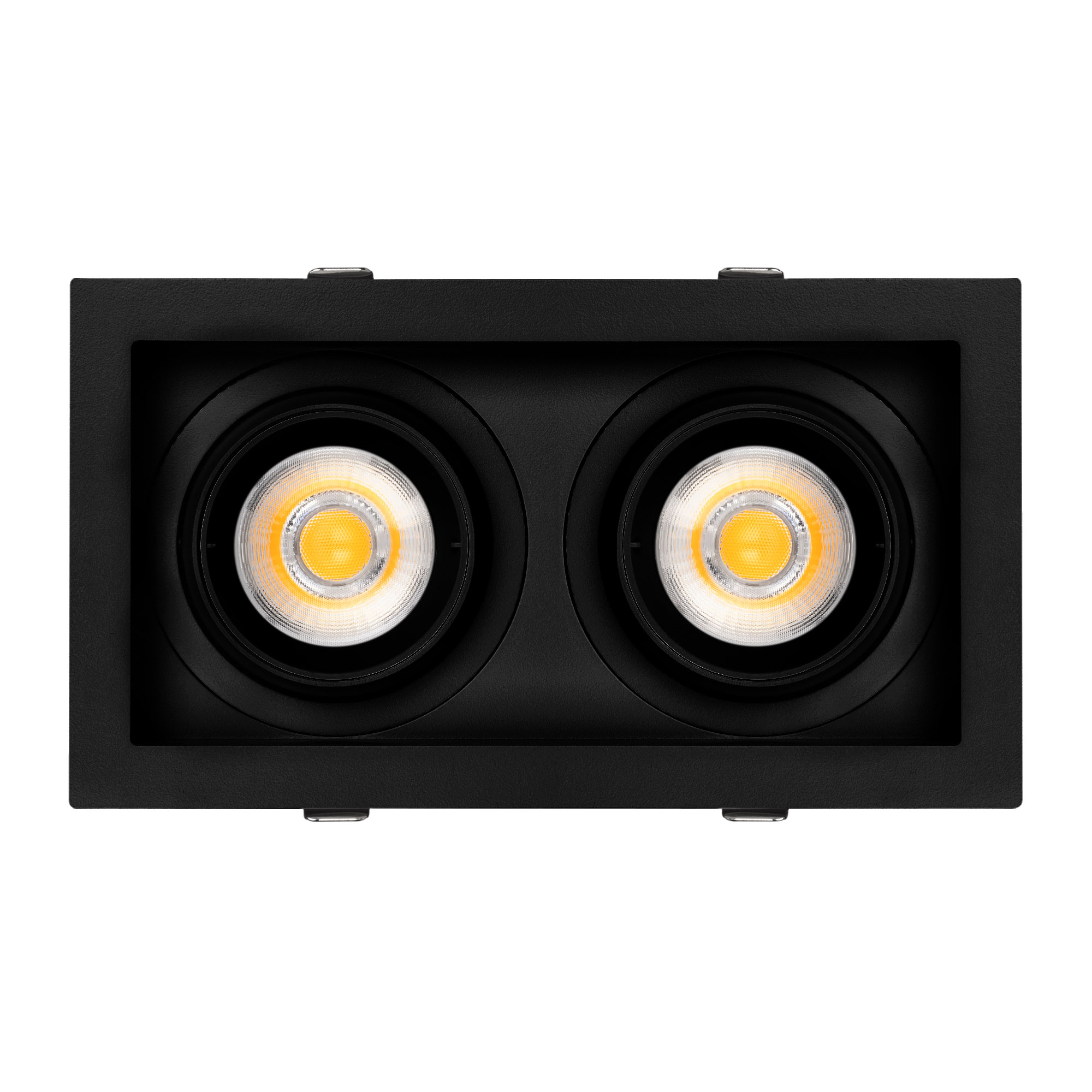 Поставка под заказ от 30 шт. Встраиваемый карданный светильник. Мощность 2х20 Вт, св. поток 4264 лм, 106 лм/Вт, дневной 4000 K, CRI>92, угол 40°, напряжение питания 230 В. Чёрный корпус из алюминия, белая вставка, степень защиты IP20. Размер: длина 210 мм, ширина 117 мм, высота 105 мм. Монтаж встраиваемый, установочное отверстие: длина 190 мм, ширина 95 мм. Драйвер 24-42 В, 500 мА, пульсация <2%.