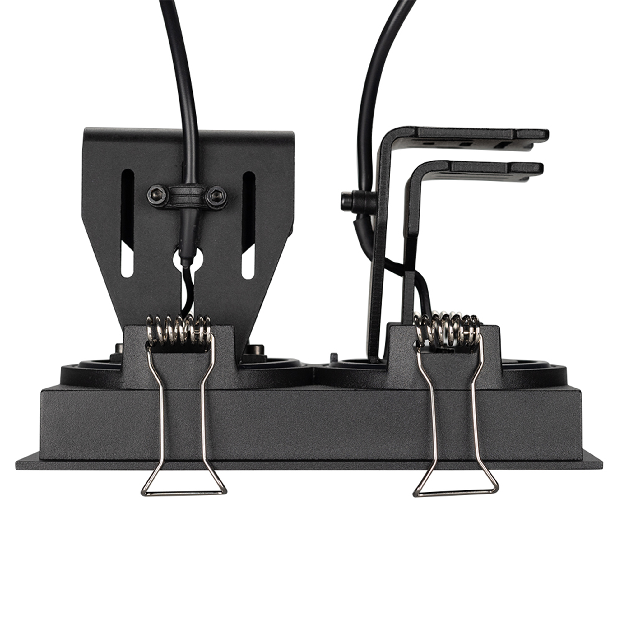 Встраиваемый поворотный светильник для потолка. Мощность 2x9W, цвет ТЕПЛЫЙ 3000K, св.поток 1260лм, угол 45°, RA>90. Корпус прямоугольный черный. Питание AC180-240V. Размеры LxWxH 148x80x90мм. Установка в отверстие 140x70мм. Драйвер в комплекте 2 шт (30-45V, 220mA).