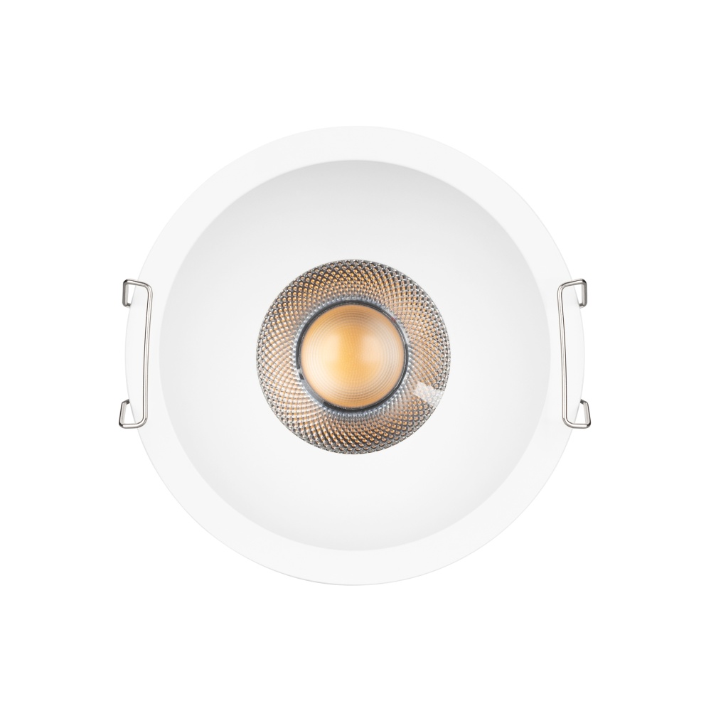Встраиваемый светильник даунлайт. Мощность 15 Вт, св. поток 1260 лм, 84 лм/Вт, тёплый 3000 K, CRI>90, угол 36°, напряжение питания 230 В. Белый круглый корпус из алюминия, степень защиты IP20. Размер: диаметр 106 мм, высота 63 мм. Монтаж встраиваемый, установочное отверстие: диаметр 100 мм. Драйвер 27-40 В, 350 мА, пульсация <2%.