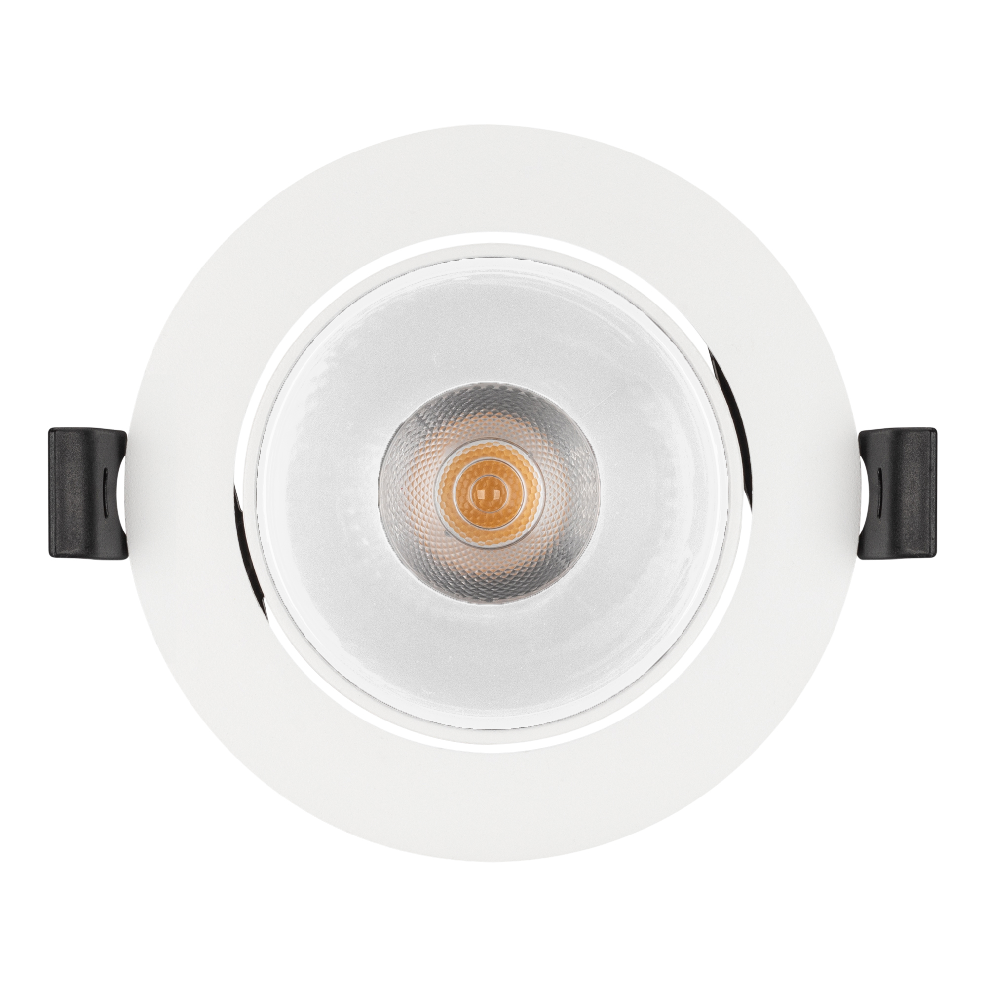 Встраиваемый поворотный светильник даунлайт. Мощность 12 Вт,св. поток 910 лм, 76 лм/Вт, дневной 4000 K, CRI>90, UGR<16, угол 32°, напряжение питания 230 В. Белый круглый корпус из алюминия, белый ГЛЯНЦЕВЫЙ отражатель из PMMA, степень защиты IP20. Размер: диаметр 102 мм, высота 70 мм. Монтаж встраиваемый, установочное отверстие: диаметр 95 мм. Драйвер 20-40 В, 300 мА, пульсация <2%.