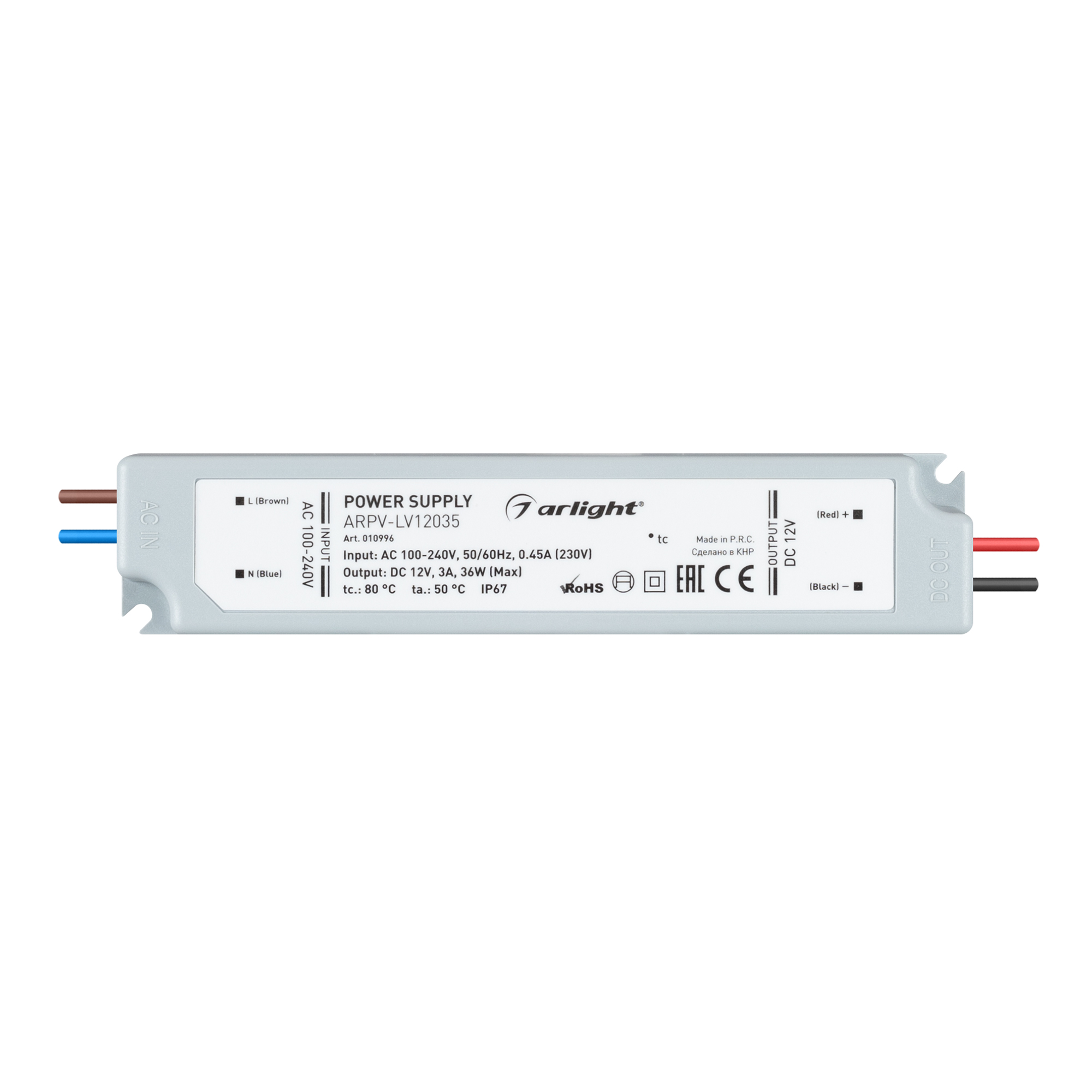 Блок питания ARPV-LV12035 (12V, 3.0A, 36W) (Arlight, IP67 Пластик, 2 года)