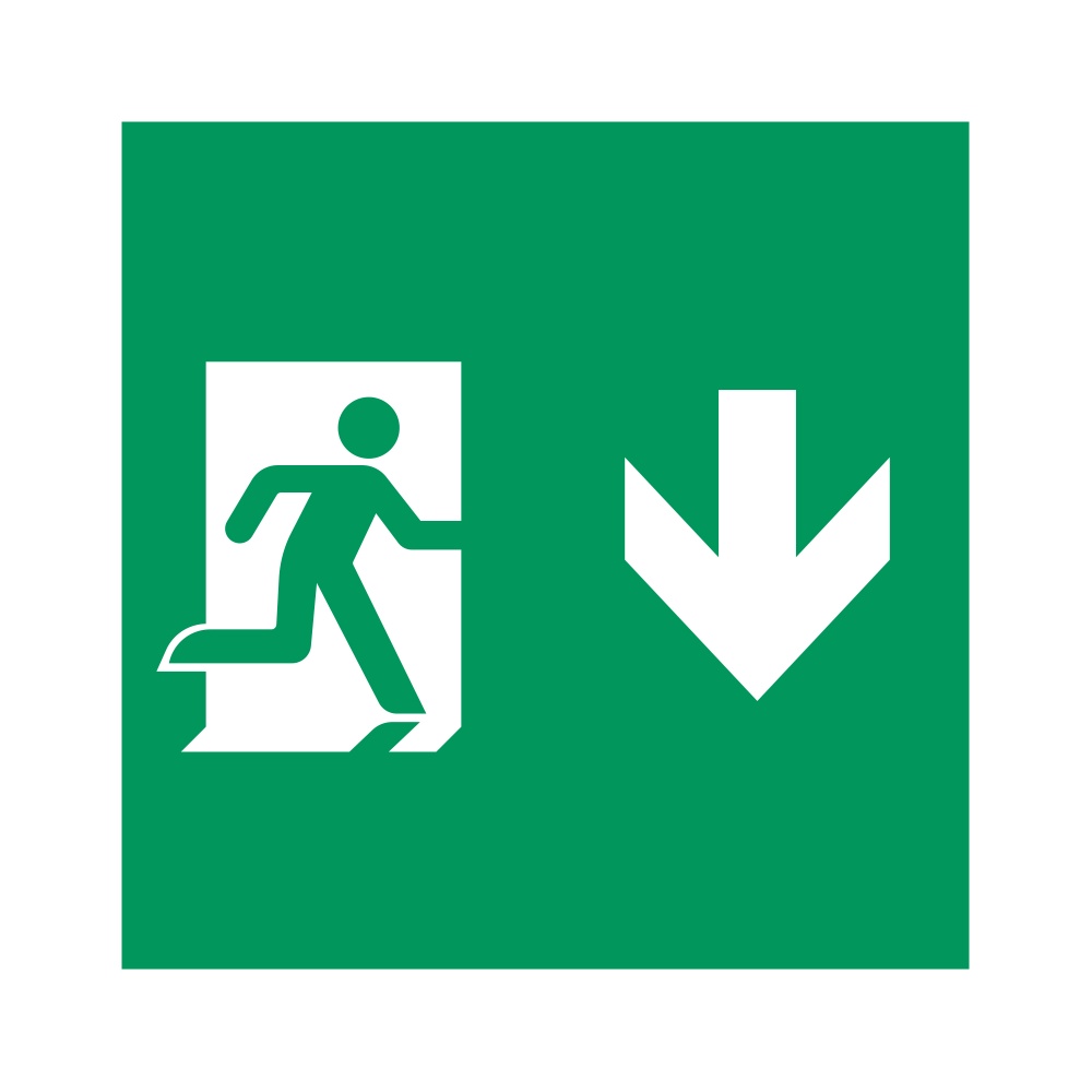 Пиктограмма "человек, стрелка вниз" для аварийных панелей серии EMG-MARK. Выполнена из пластика, вставляется в LGP панель аварийного указателя.