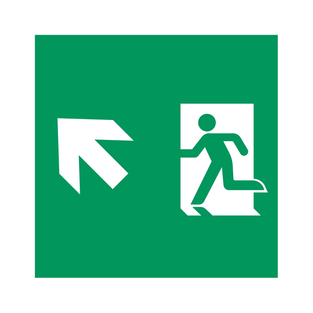 Пиктограмма "человек, стрелка верх-влево" для аварийных панелей серии EMG-MARK. Выполнена из пластика, вставляется в LGP панель аварийного указателя.