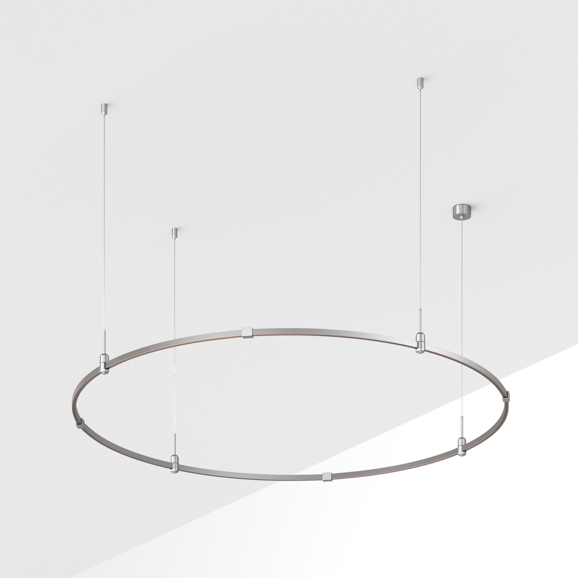 Подвесная конструкция APRIORI, форма круг. В комплекте треки с аксессуарами и гибкими подвесами. DC48V. Материал алюминий, цвет титан. Размер: диаметр 1800мм, высота 22мм. Светильники и источники питания приобретаются отдельно.