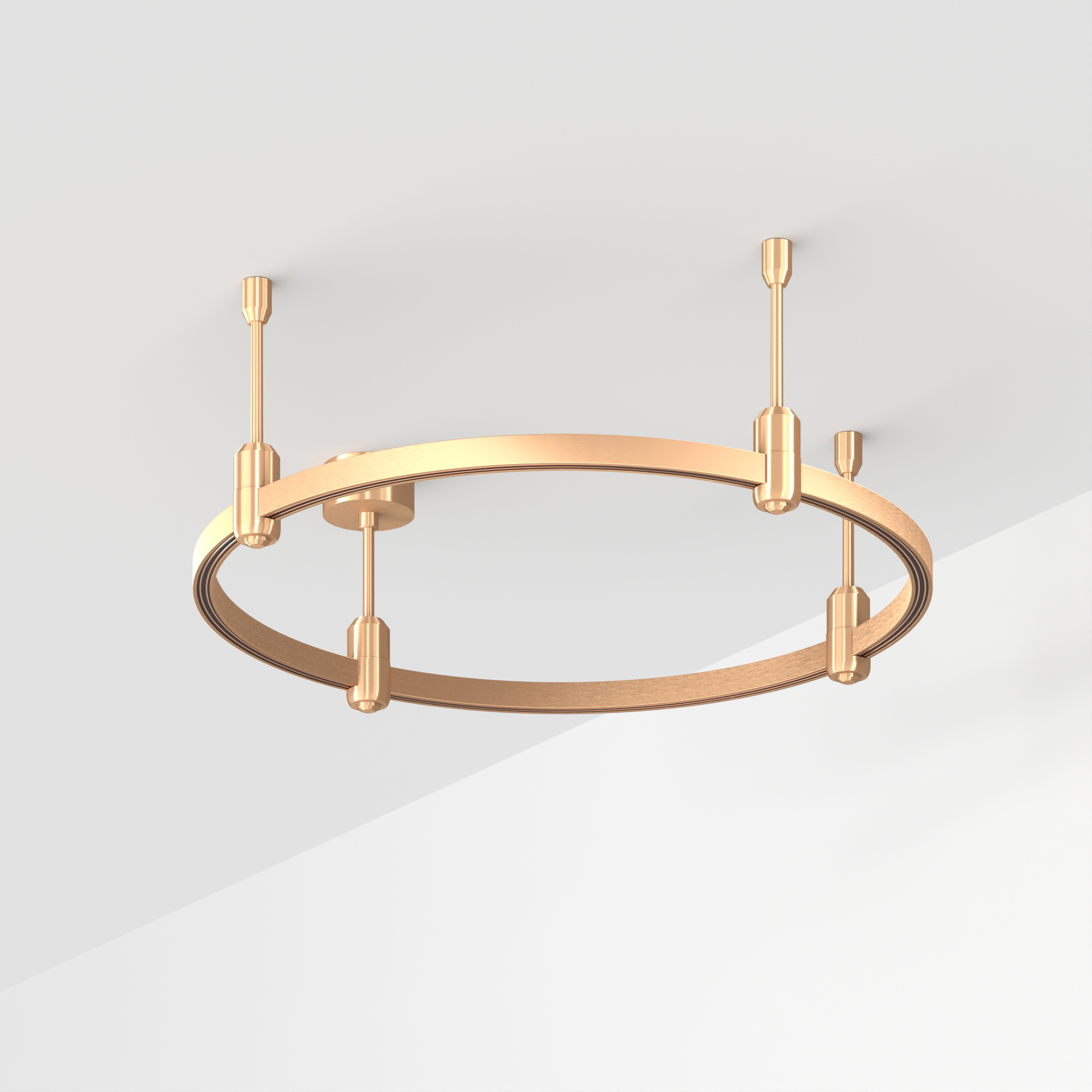 Подвесная конструкция APRIORI, форма круг. В комплекте треки с аксессуарами и жесткими подвесами длиной 200мм. DC48V. Материал алюминий, цвет светлое золото. Размер: диаметр 600мм, высота 22мм. Светильники и источники питания приобретаются отдельно.