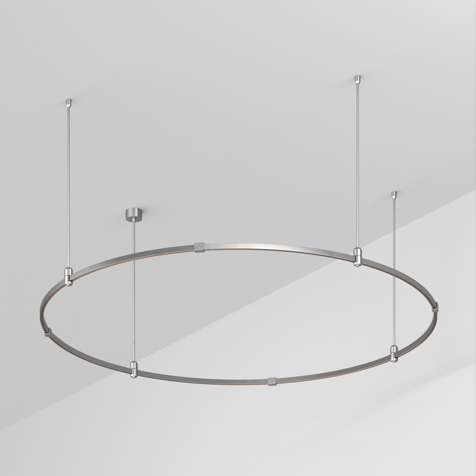 Подвесная конструкция APRIORI, форма круг. В комплекте треки с аксессуарами и жесткими подвесами длиной 400мм. DC48V. Материал алюминий, цвет титан. Размер: диаметр 1500мм, высота 22мм. Светильники и источники питания приобретаются отдельно.