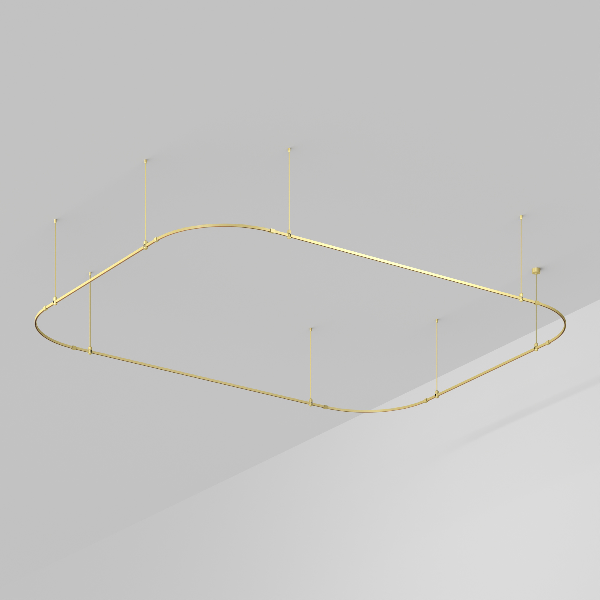 Подвесная конструкция APRIORI, форма закруглённый прямоугольник. В комплекте треки с аксессуарами и жесткими подвесами длиной 800мм. DC48V. Материал алюминий, цвет светлое золото. Размер ДxШxВ: 4500x3500x22мм. Светильники и источники питания приобретаются отдельно.