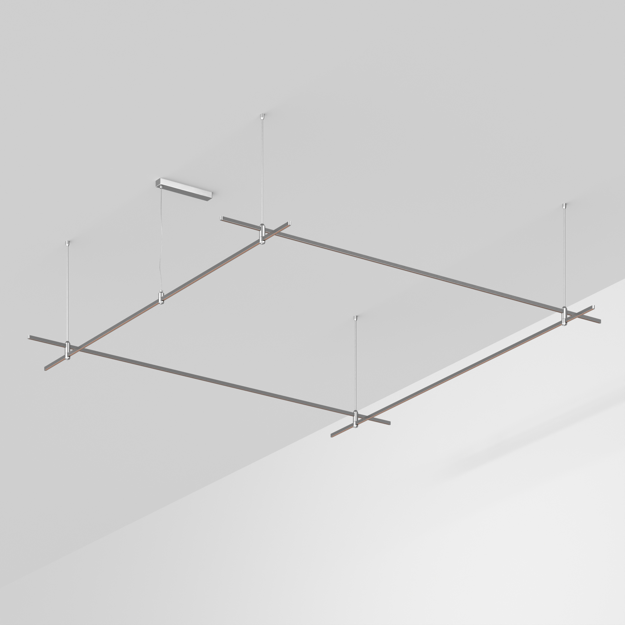 Подвесная конструкция APRIORI, форма квадрат. В комплекте треки с аксессуарами и жесткими подвесами длиной 800мм. DC48V. Материал алюминий, цвет титан. Размер ДxШxВ: 3000x3000x22мм. Светильники и источники питания приобретаются отдельно.
