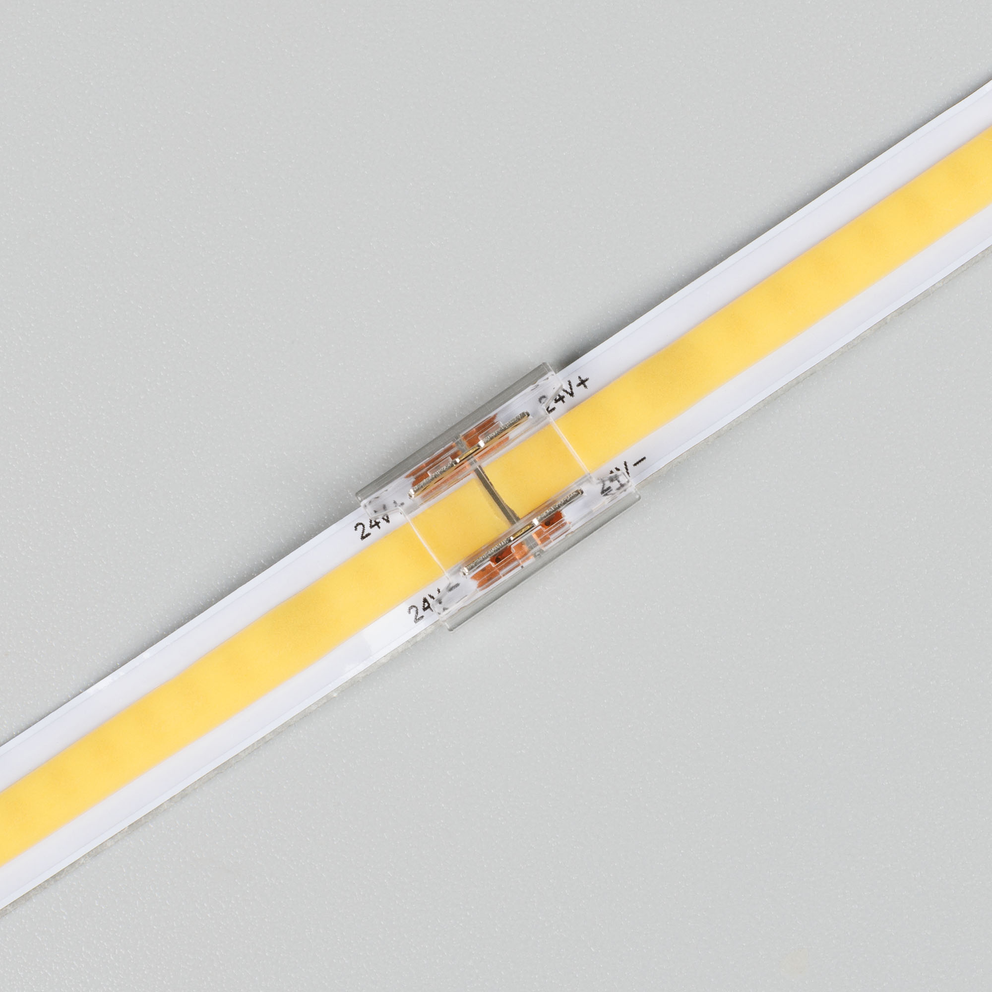 Одиночный коннектор для соединения 2-х отрезков открытых светодиодных одноцветных лент шириной 8 мм, в том числе лент COB. Материал - прозрачный пластик. Обеспечивает соединение без видимых разрывов. Максимальный допустимый ток 6 А, максимальное напряжение 48 В, степень защиты IP20. Размеры пластикового коннектора 13.5 x 9.8 x 4.9 мм. Цена за 1шт.