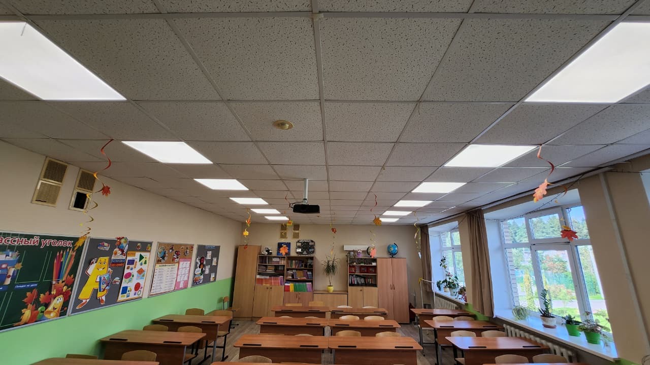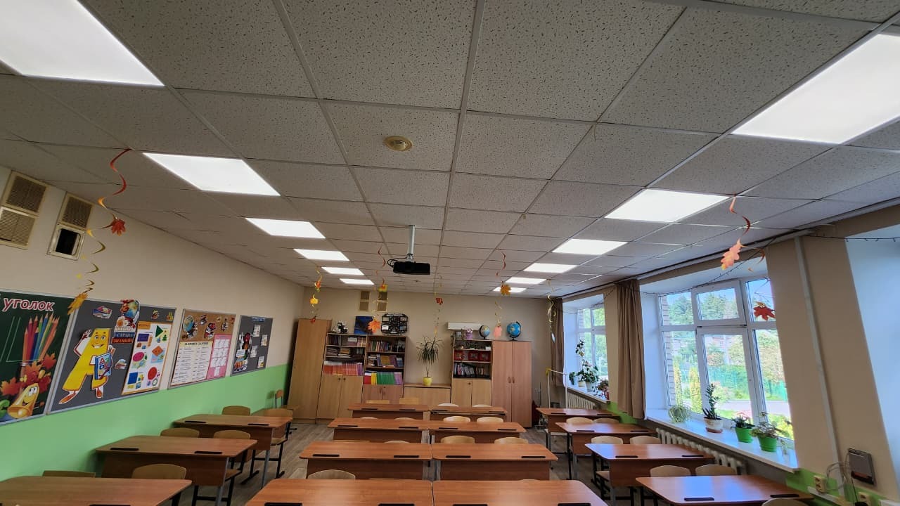 Помещение обеспечено современным, энергоэффективным и комфортным освещением, отвечающим всем требованиям безопасности и эргономики. Родители, учителя и учащиеся получили качественное освещение, которое прослужит долгие годы без необходимости частой замены элементов.