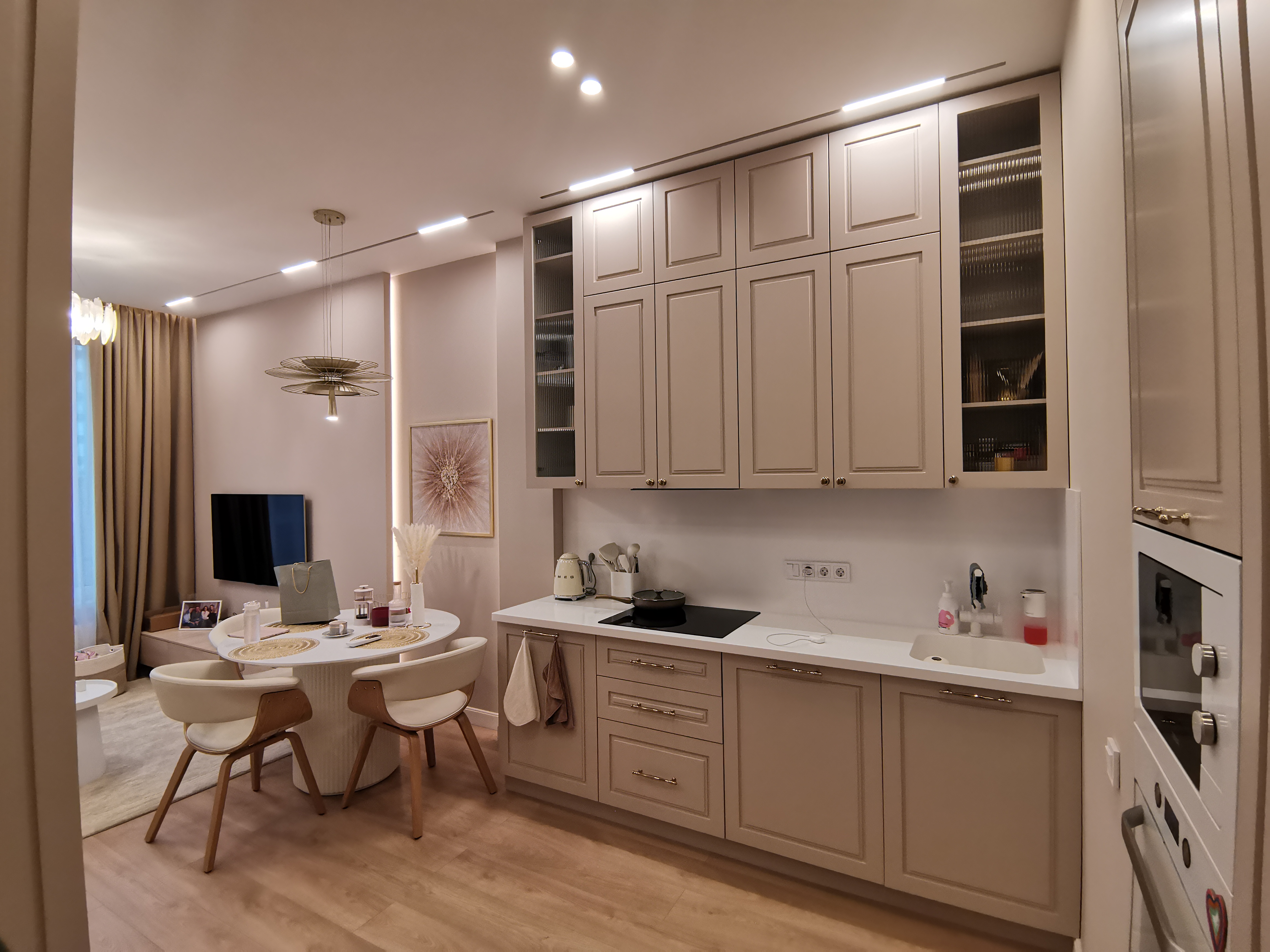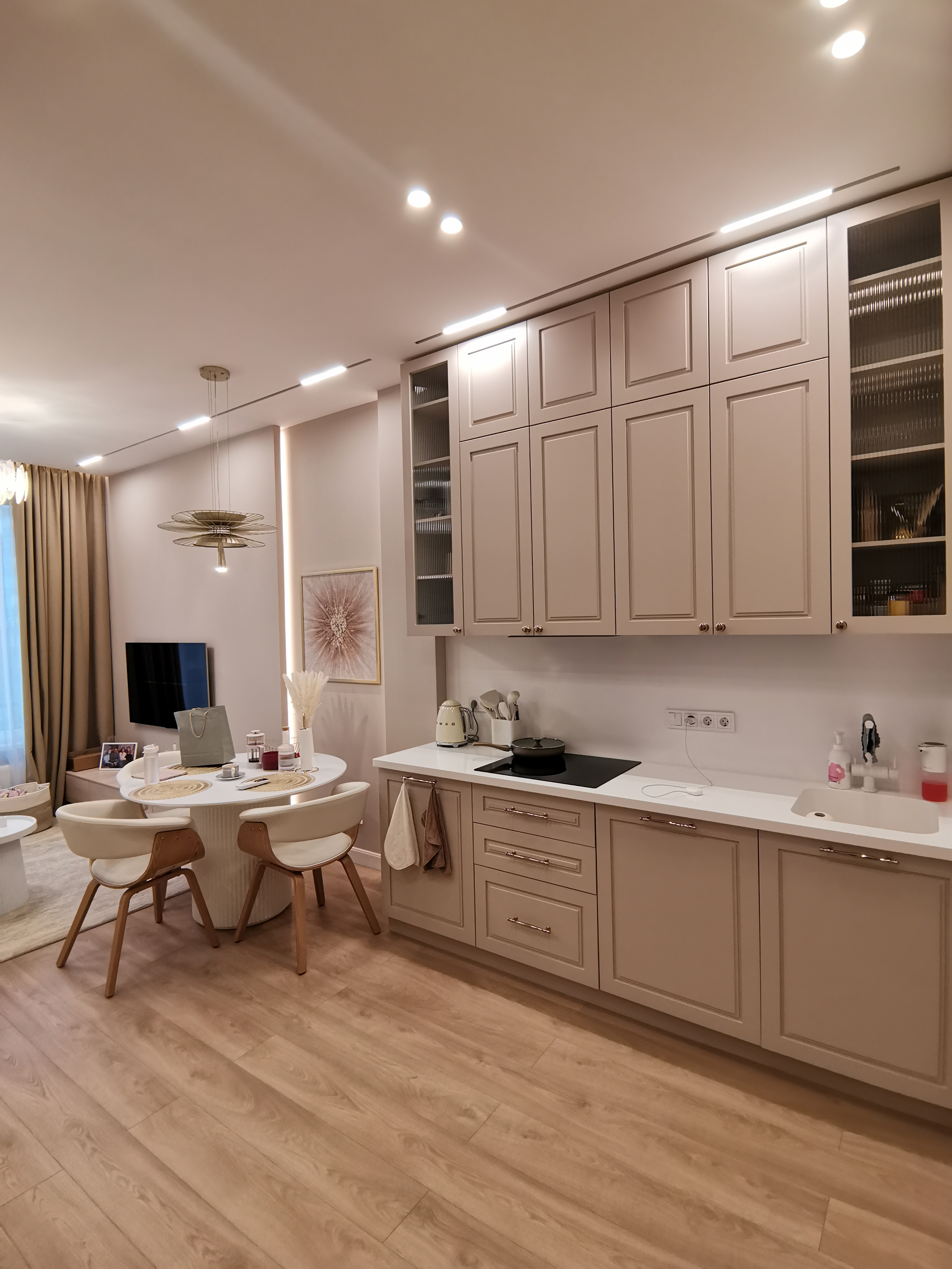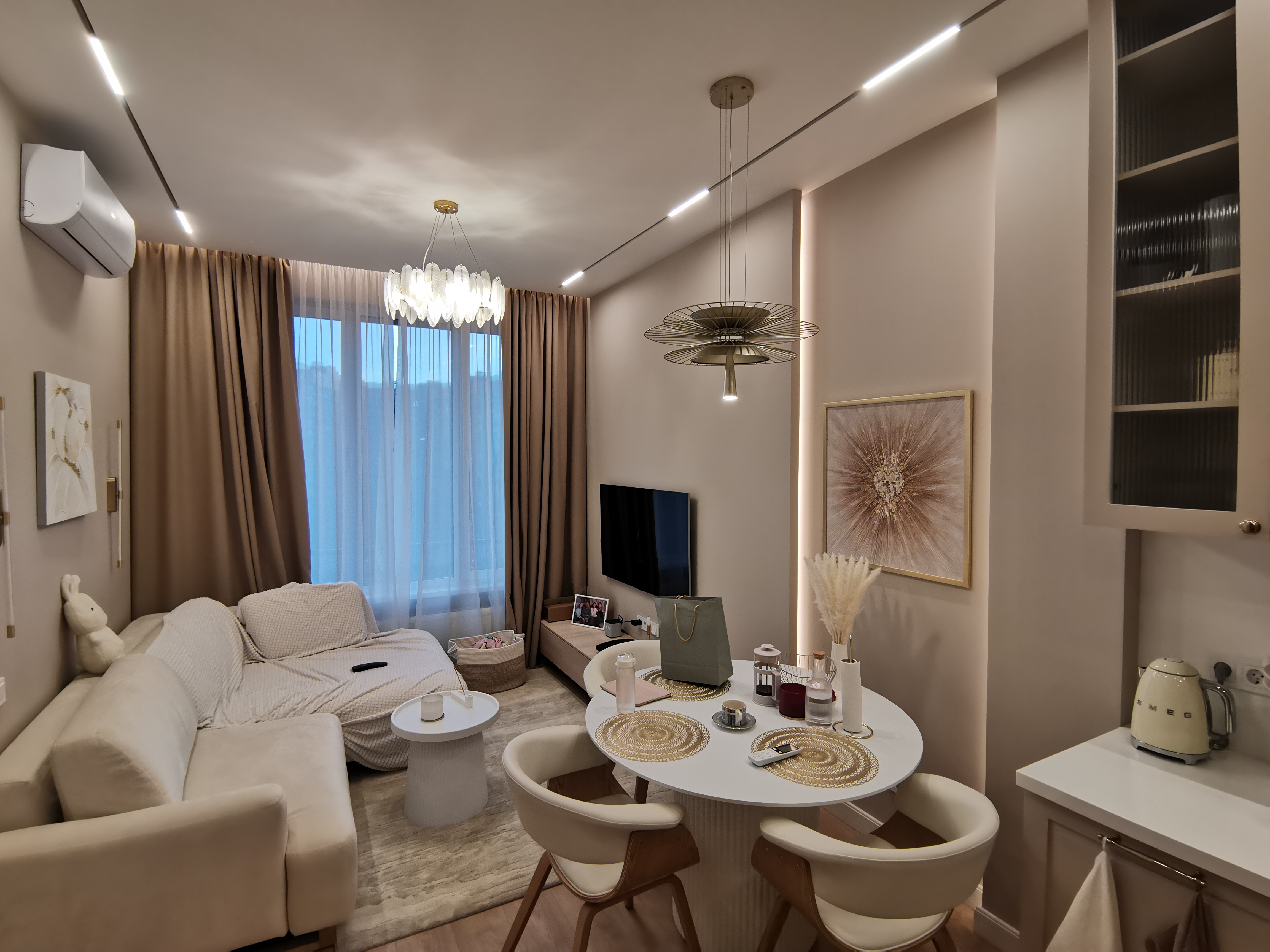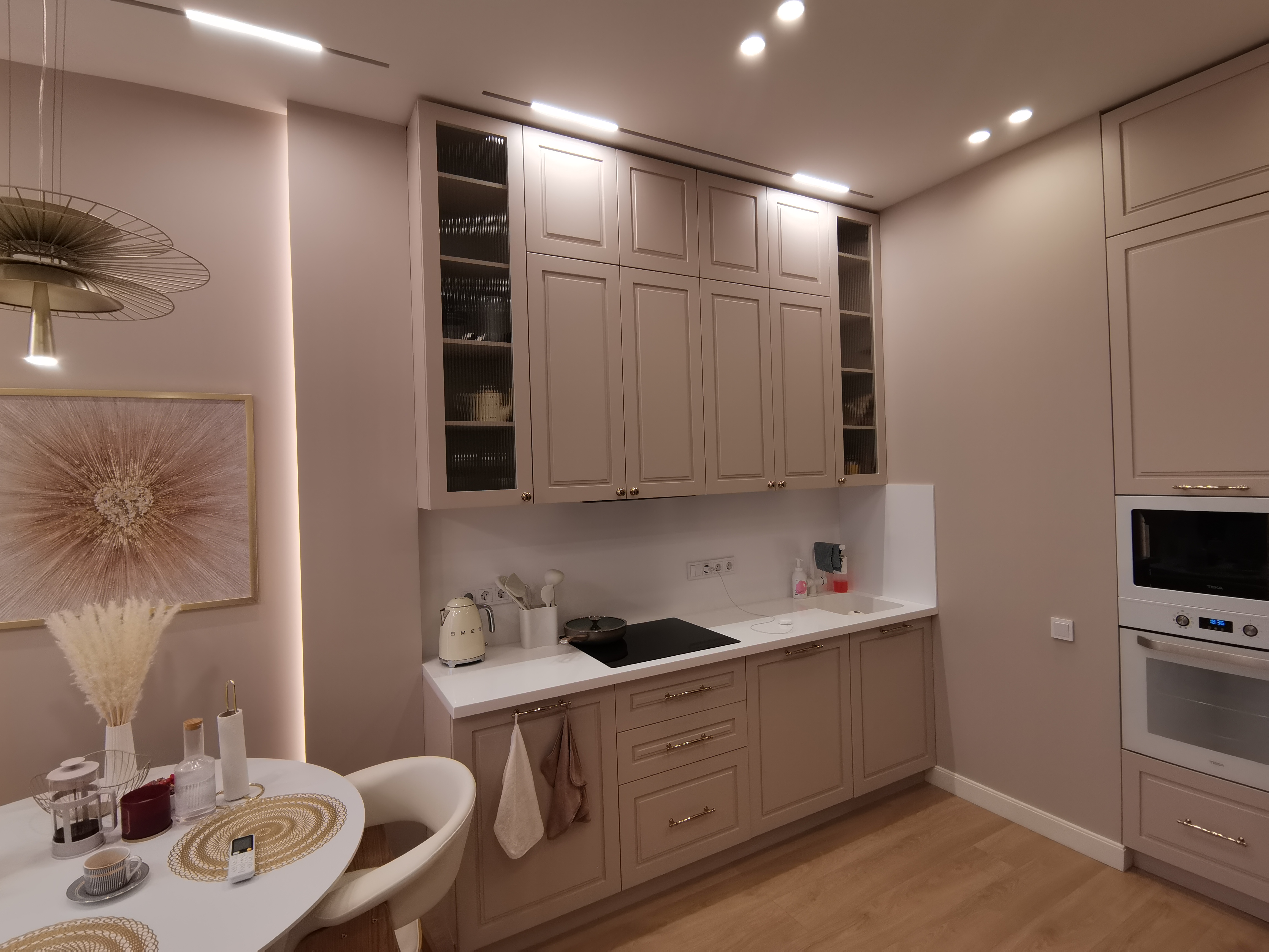Основное освещение организовано встраиваемыми светильниками MS-BREEZE-BUILT и встраиваемой магнитной трековой системой ORIENT 48В.