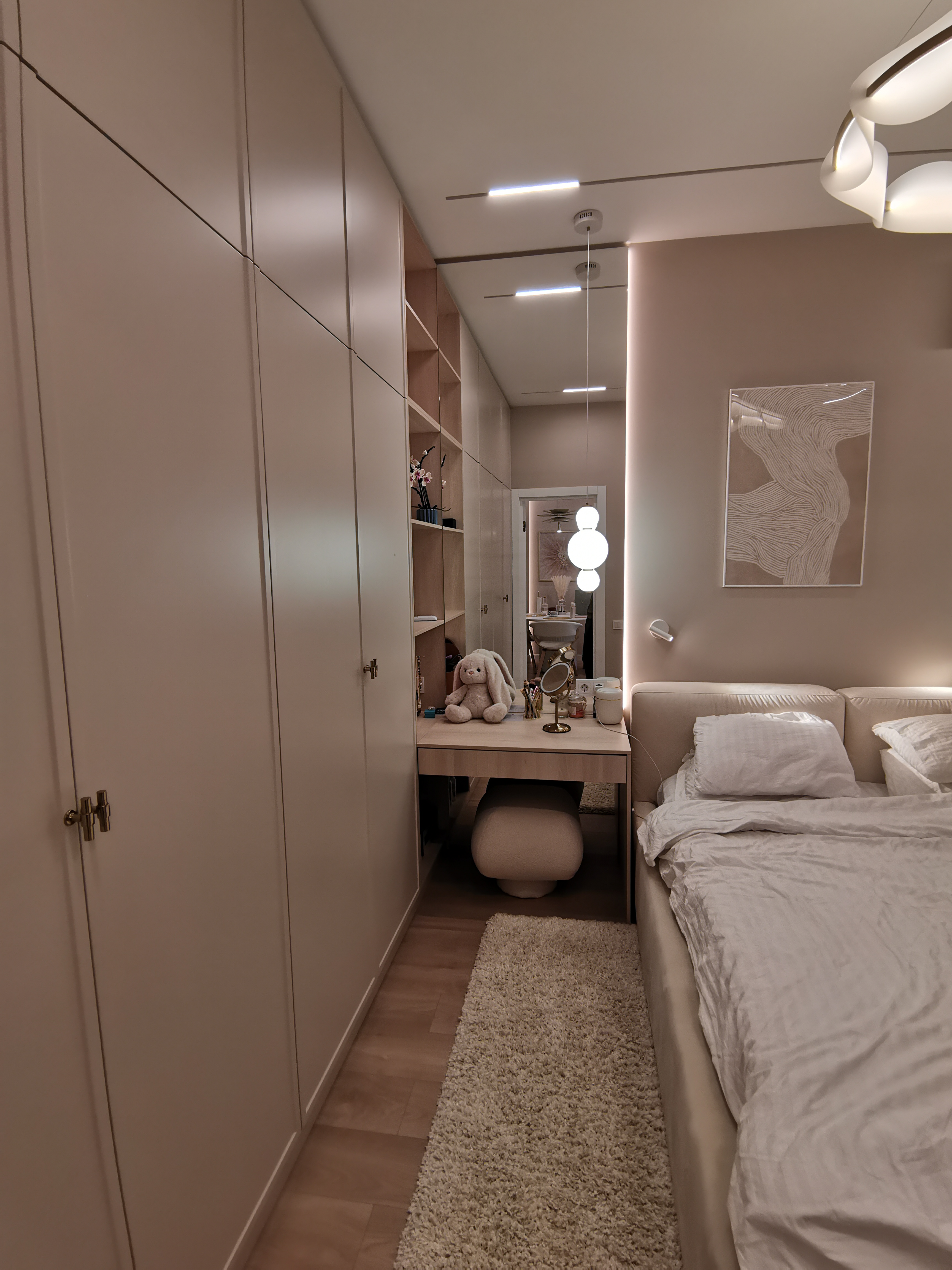 Акцентное освещение — светильники SP-BED-NB-R90 дополняют интерьер стильными световыми акцентами в спальной комнате. Светильники гармонично вписываются в интерьер, не утяжеляя его и не создавая дополнительные источники света.