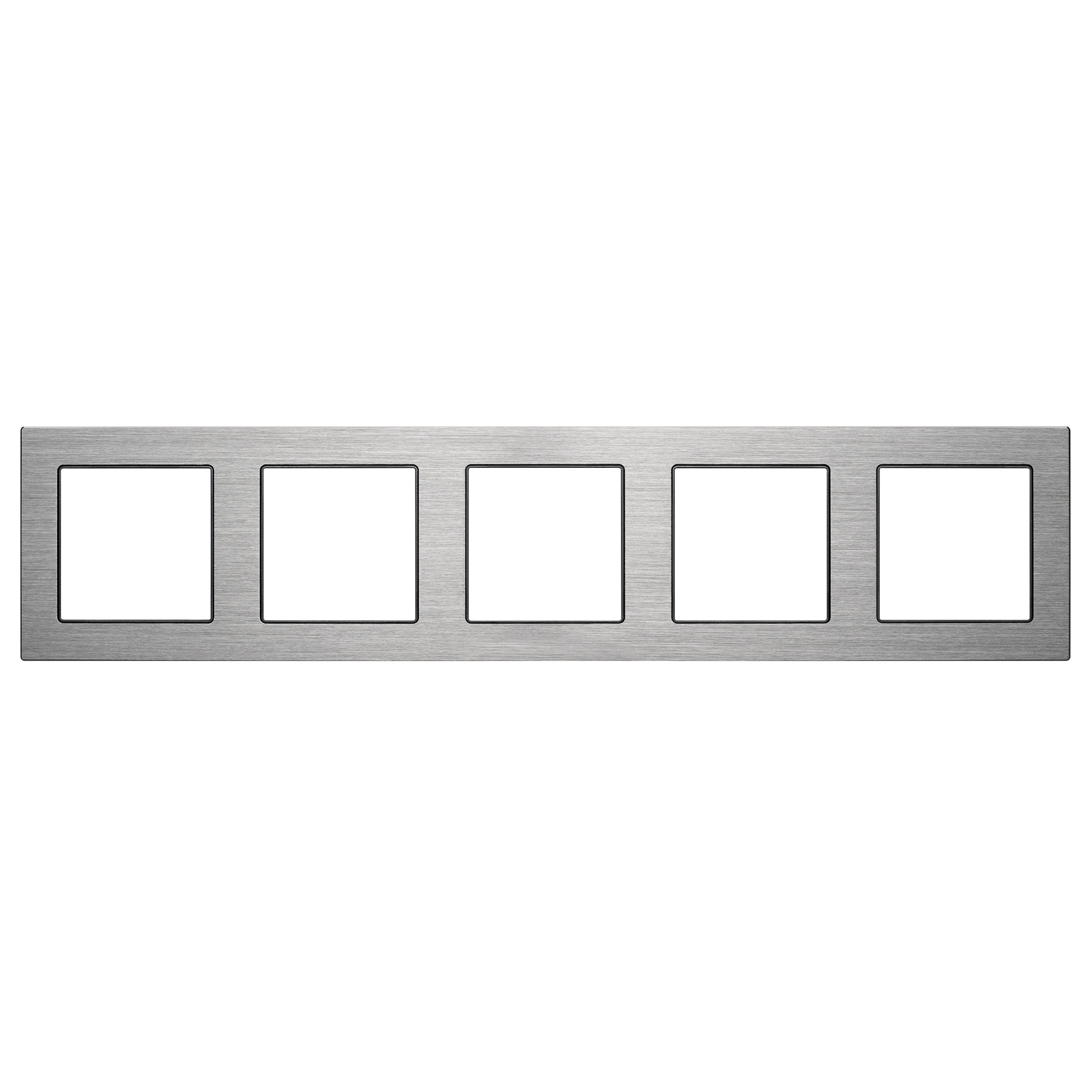 Рамка алюминиевая на 5 пост, под встраиваемый механизм (квадрат). Цвет - серый. Ориентации монтажа - горизонтальная.