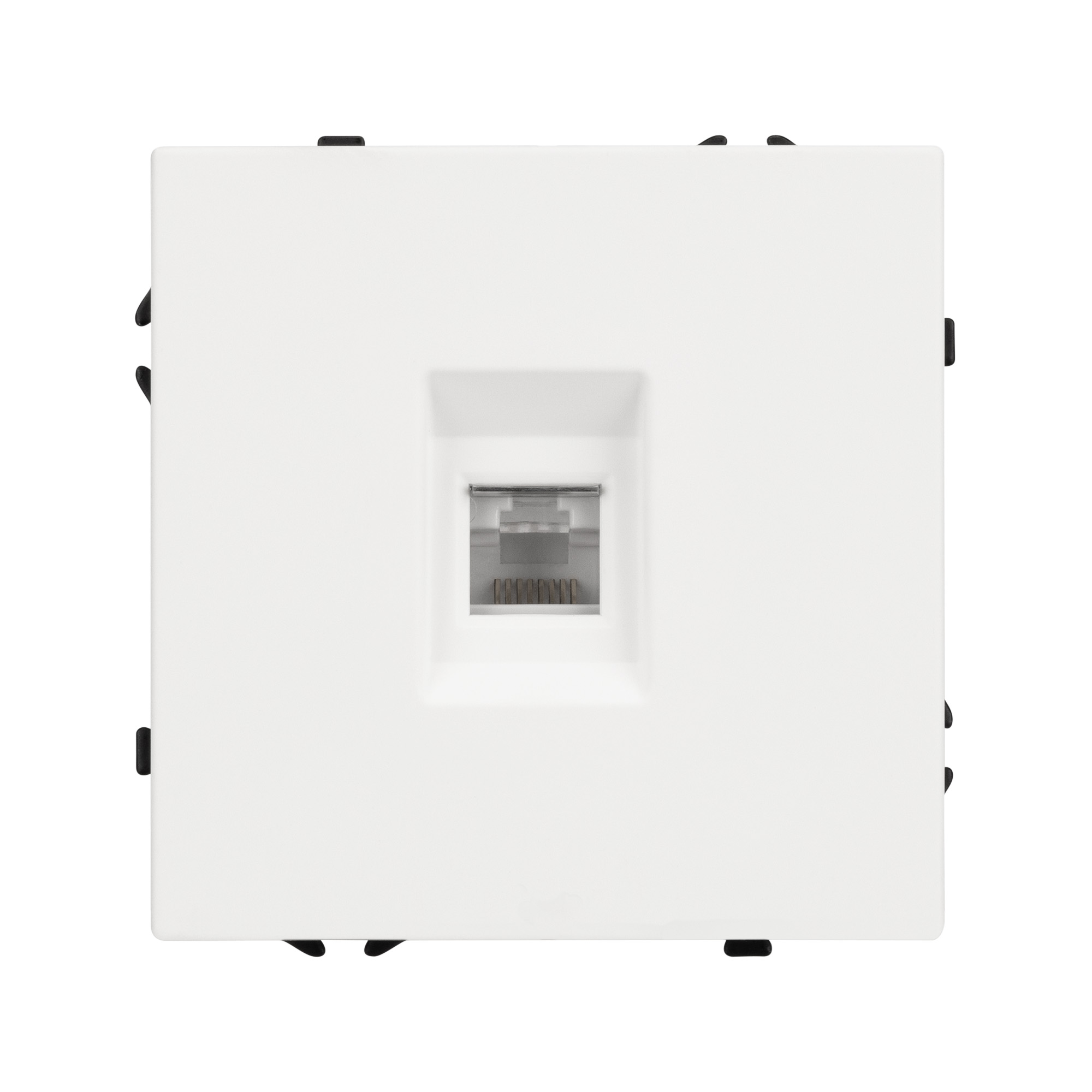 Механизм компьютерной розетки на 1 пост 6-й категории. Цвет - Белый, с Soft-Touch покрытием. Без фронтальной рамки. Уровень пылевлагозащиты IP20. Тип подключаемого разъема - RJ45. Розетка устанавливается в стандартный подрозетник круглого сечения диаметром 60мм.