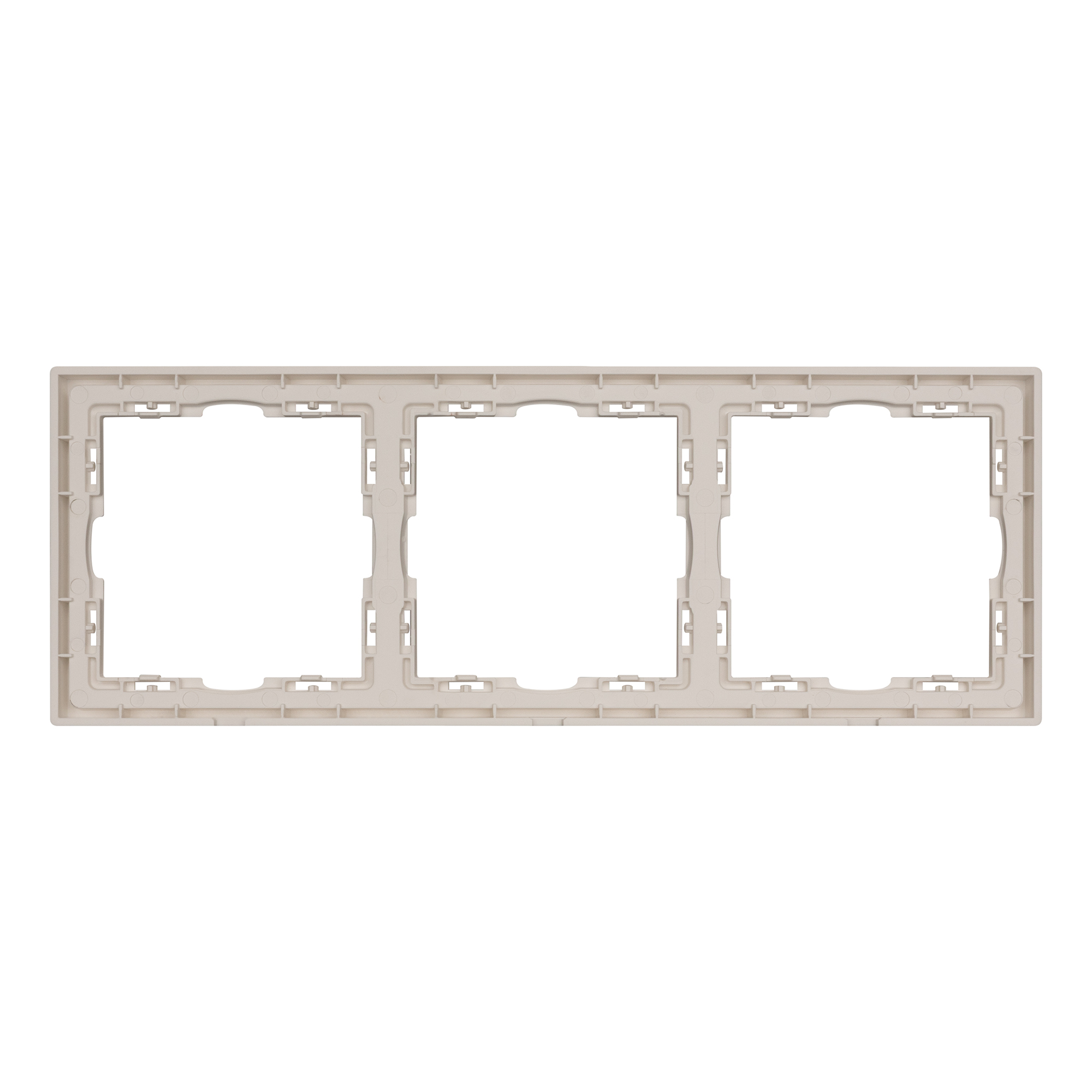Рамка пластиковая на 3 поста, под встраиваемый механизм. Цвет - кашемир, с Soft-Touch поверхностью. Среднего уровня герметичности IP20. Ориентация монтажа горизонтальная.