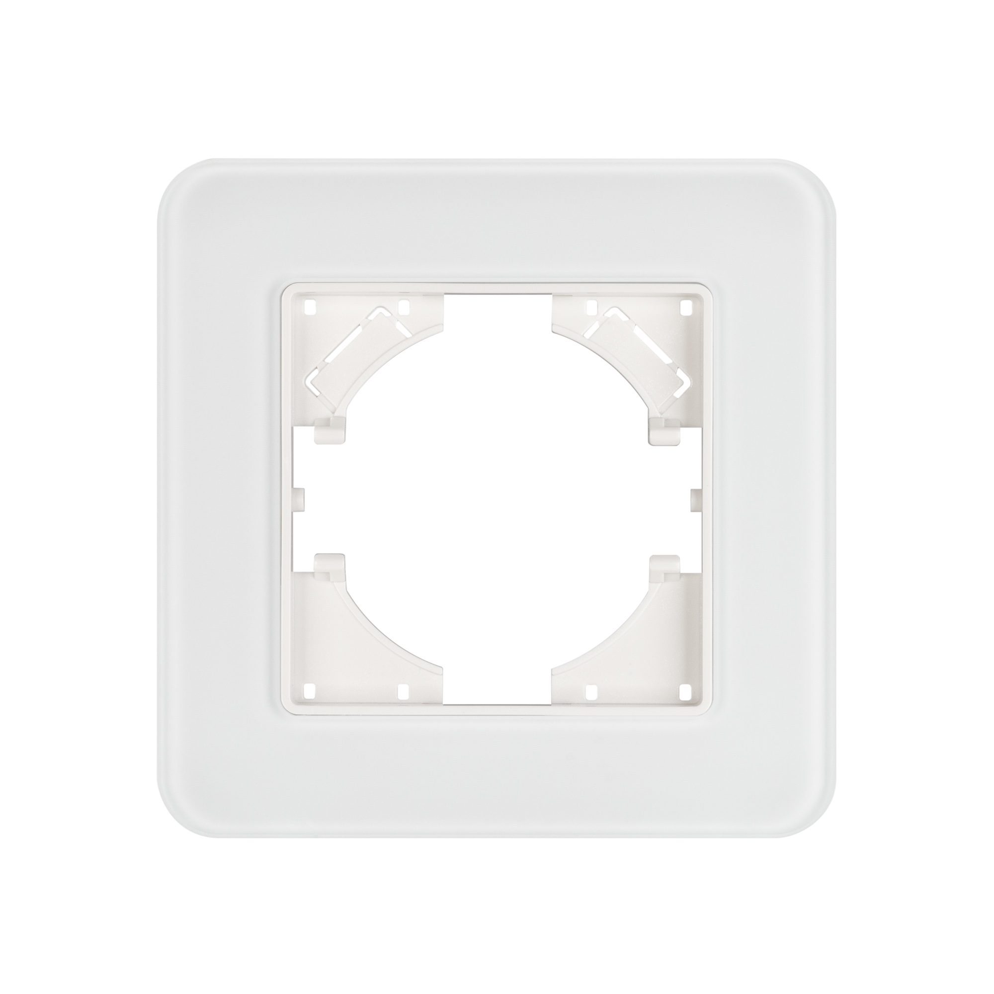 Рамка стеклянная на 1 пост, под встраиваемый механизм. Цвет - белый с Soft-Touch покрытием. Среднего уровня герметичности IP20. Ориентация монтажа - горизонтальная (основным ориентиром служат посадочные выступы для накладки механизма).