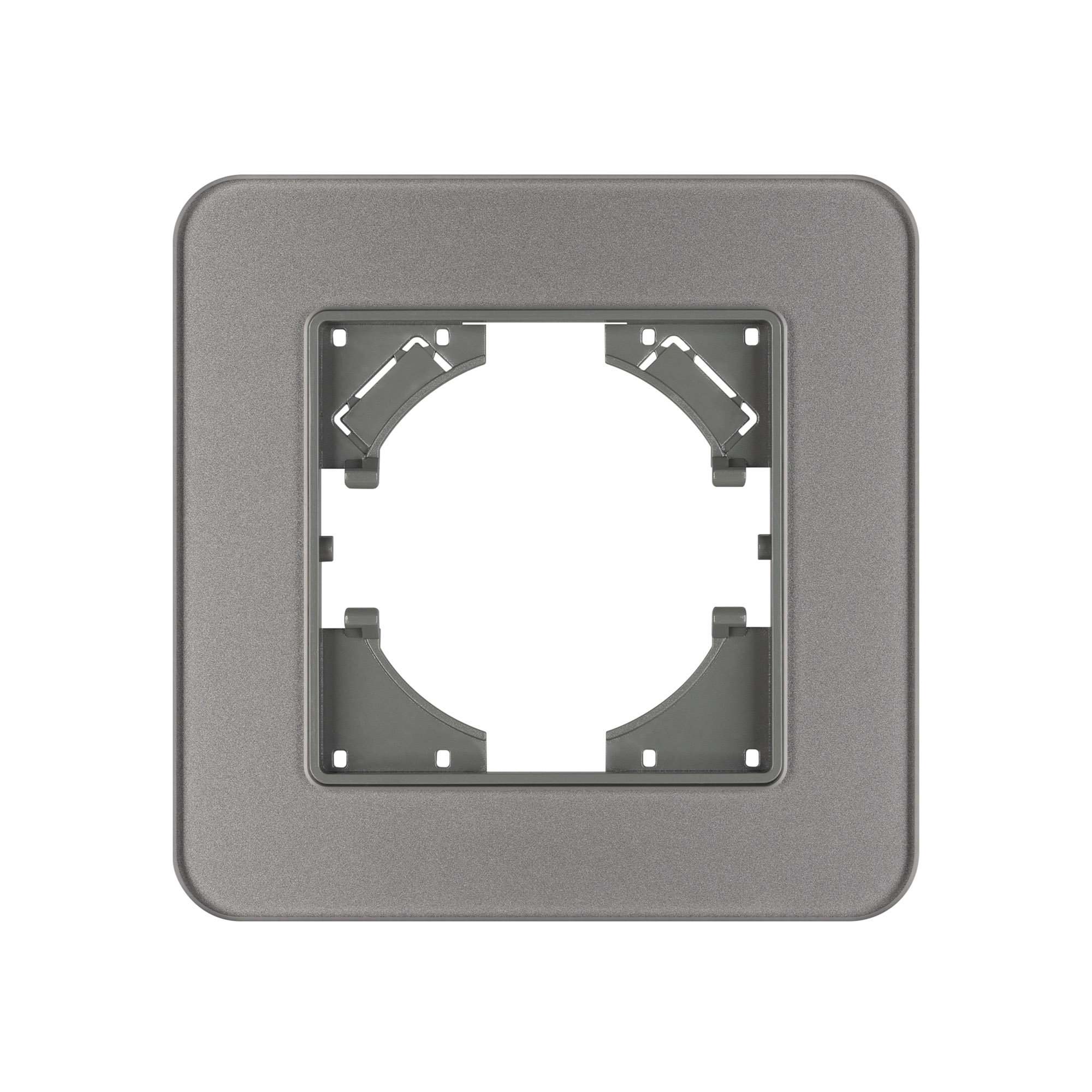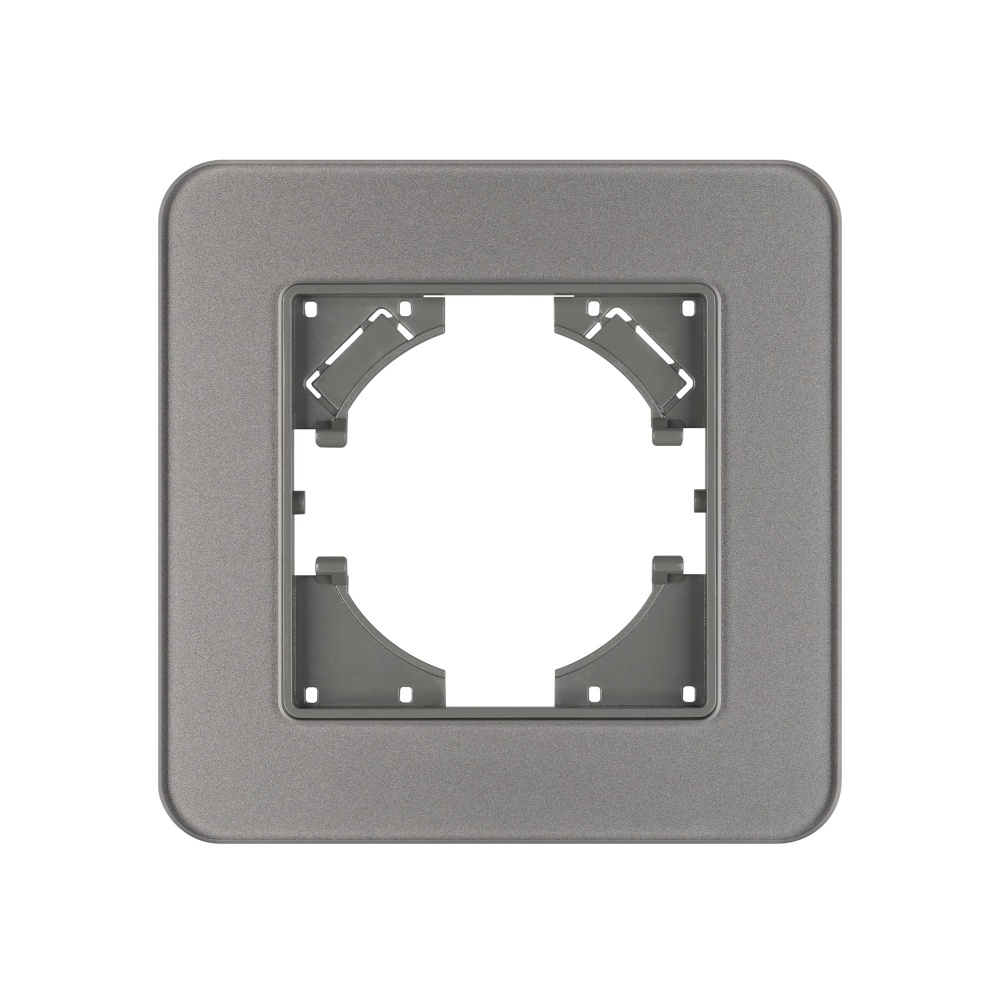 Рамка стеклянная на 1 пост, под встраиваемый механизм. Цвет - серый. Среднего уровня герметичности IP20. Ориентация монтажа - горизонтальная (основным ориентиром служат посадочные выступы для накладки механизма).