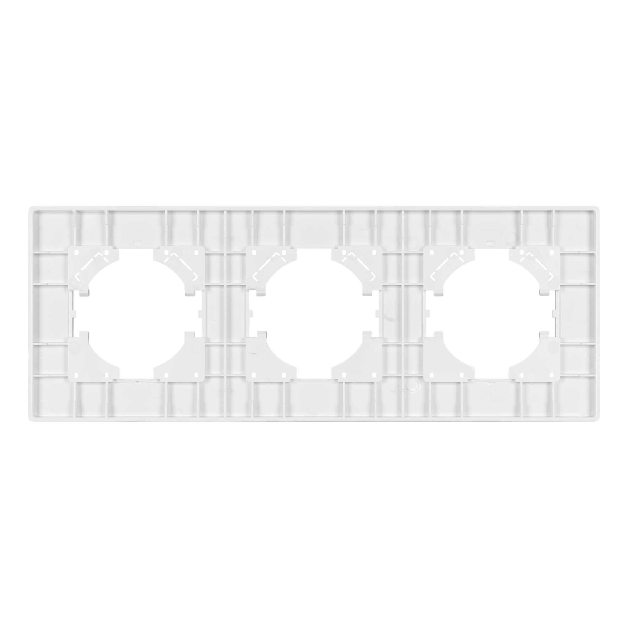 Рамка пластиковая на 3 поста, под встраиваемый механизм. Цвет - черный. Среднего уровня герметичности IP20. Ориентация монтажа - горизонтальная (основным ориентиром служат посадочные выступы для накладки механизма).