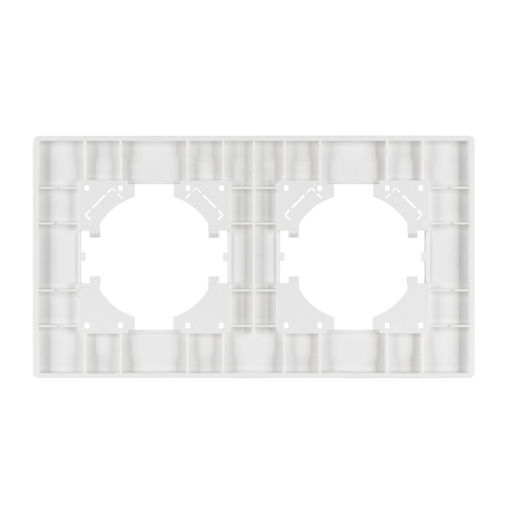 Рамка пластиковая на 2 поста, под встраиваемый механизм. Цвет - белый. Среднего уровня герметичности IP20. Ориентация монтажа - горизонтальная (основным ориентиром служат посадочные выступы для накладки механизма).
