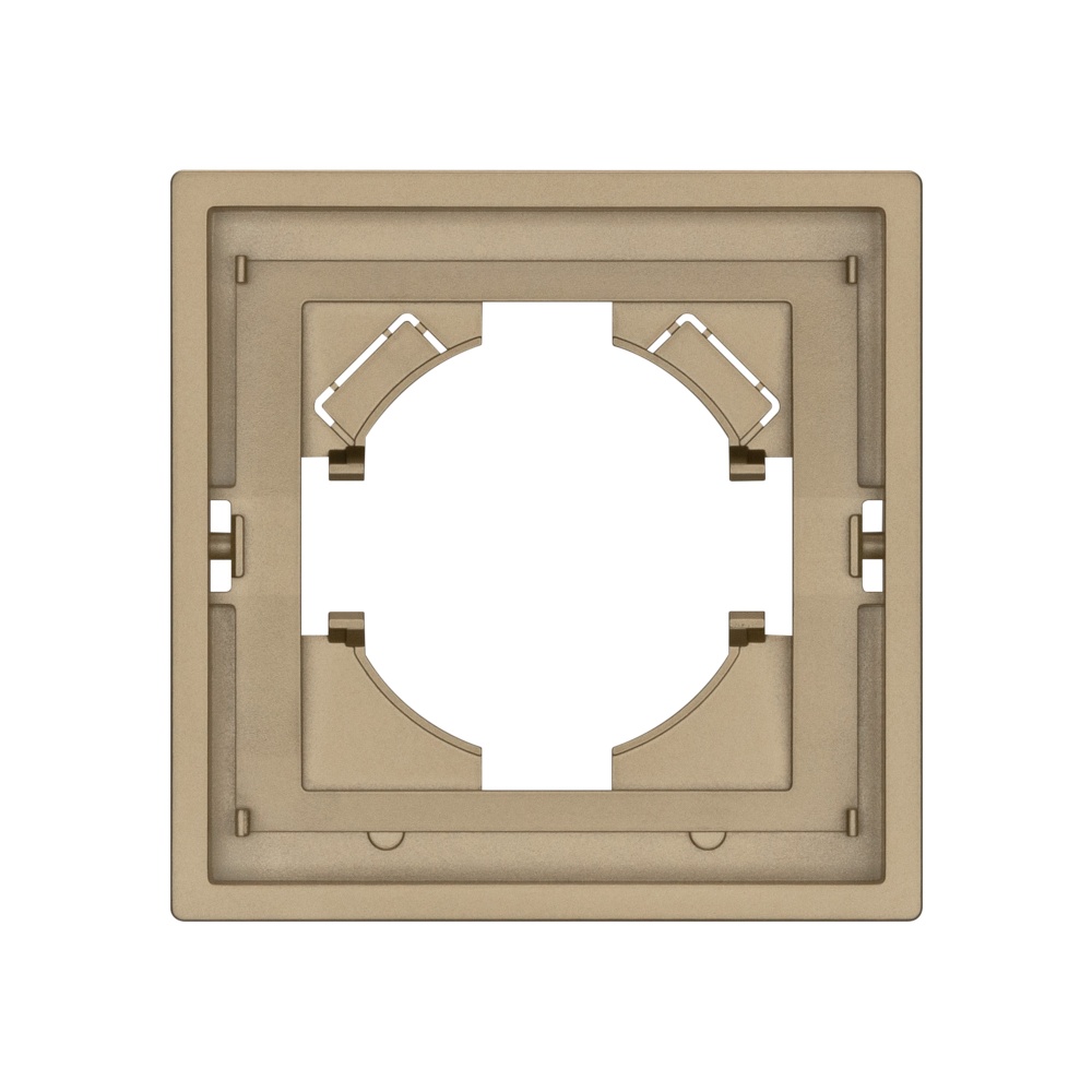 Рамка пластиковая на 1 пост, под встраиваемый механизм. Цвет - золотой, с Soft-Touch покрытием. Среднего уровня герметичности IP20. Ориентация монтажа горизонтальная.