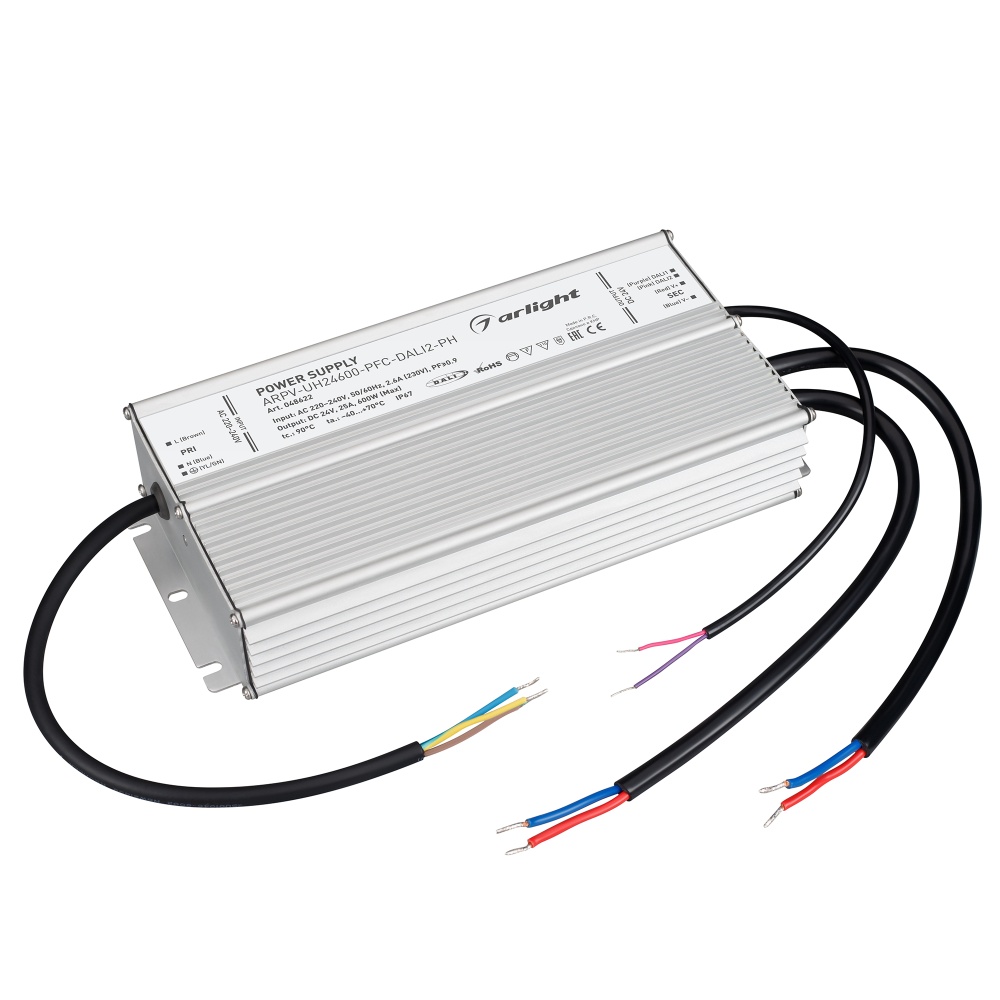 Блок питания ARPV-UH24600-PFC-DALI2-PH (24V, 25A, 600W) (Arlight, IP67 Металл, 7 лет)