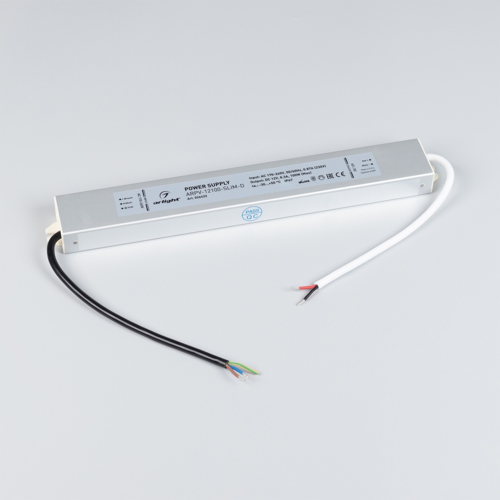 Источник напряжения с гальванической развязкой для светодиодных изделий. Входное напряжение 170-265 VAC. Выходные параметры: 12 В, 8,3 А, 100 Вт. Встроенный PFC >0,5. Герметичный алюминиевый корпус IP 67. Рабочая температура -30…+50C⁰. Габаритные размеры длина 303 мм, ширина 40 мм, высота 22 мм. Гарантийный срок 3 года.