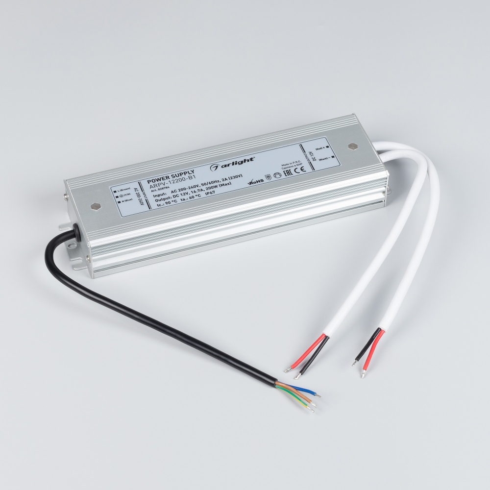 Источник напряжения с гальванической развязкой для светодиодных изделий. Входное напряжение 200-240 VAC. Выходные параметры: 12 В, 16,7 А, 200 Вт. Встроенный PFC >0,5. Герметичный алюминиевый корпус IP 67. Рабочая температура -30…+50C⁰. Габаритные размеры длина 235 мм, ширина 67 мм, высота 34 мм. Совместим с диммерами с частотой ШИМ более 5кГц. Гарантийный срок 3 года.