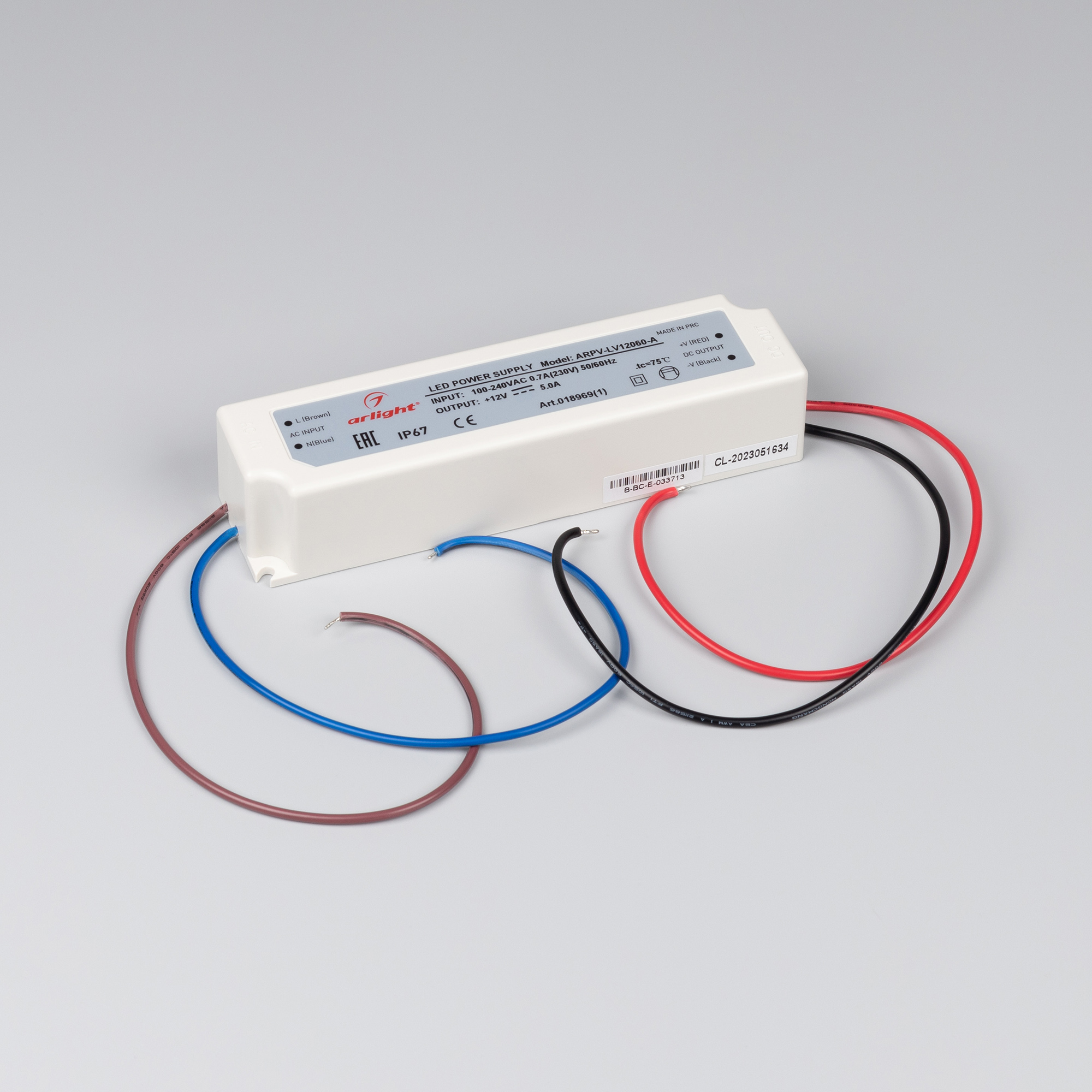 Блок питания ARPV-LV12060-A (12V, 5.0A, 60W) (Arlight, IP67 Пластик, 3 года)