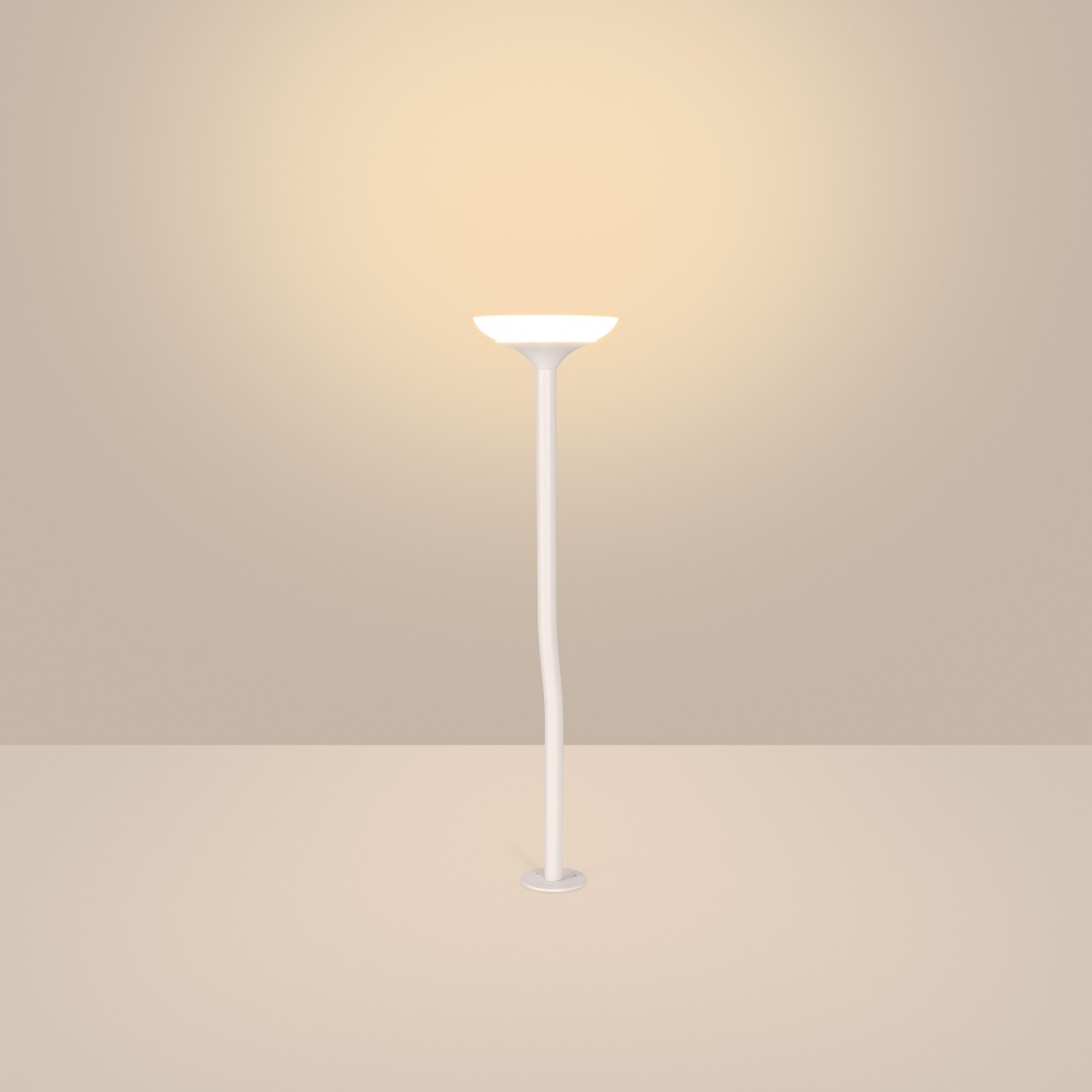 Уличный декоративный светодиодный светильник. Мощность 2 Вт, св. поток 252 лм, 122 лм/Вт, теплый 3000 K, CRI>80, угол излучения 100°, напряжение питания 24 В. Белый корпус из алюминия, прозрачный матовый рассеиватель из PMMA. Степень защиты IP65. Размер: диаметр 98 мм, высота 450 мм, высота углубления 155 мм. Монтаж в грунт с помощью основания пика (входит в комплект поставки).
