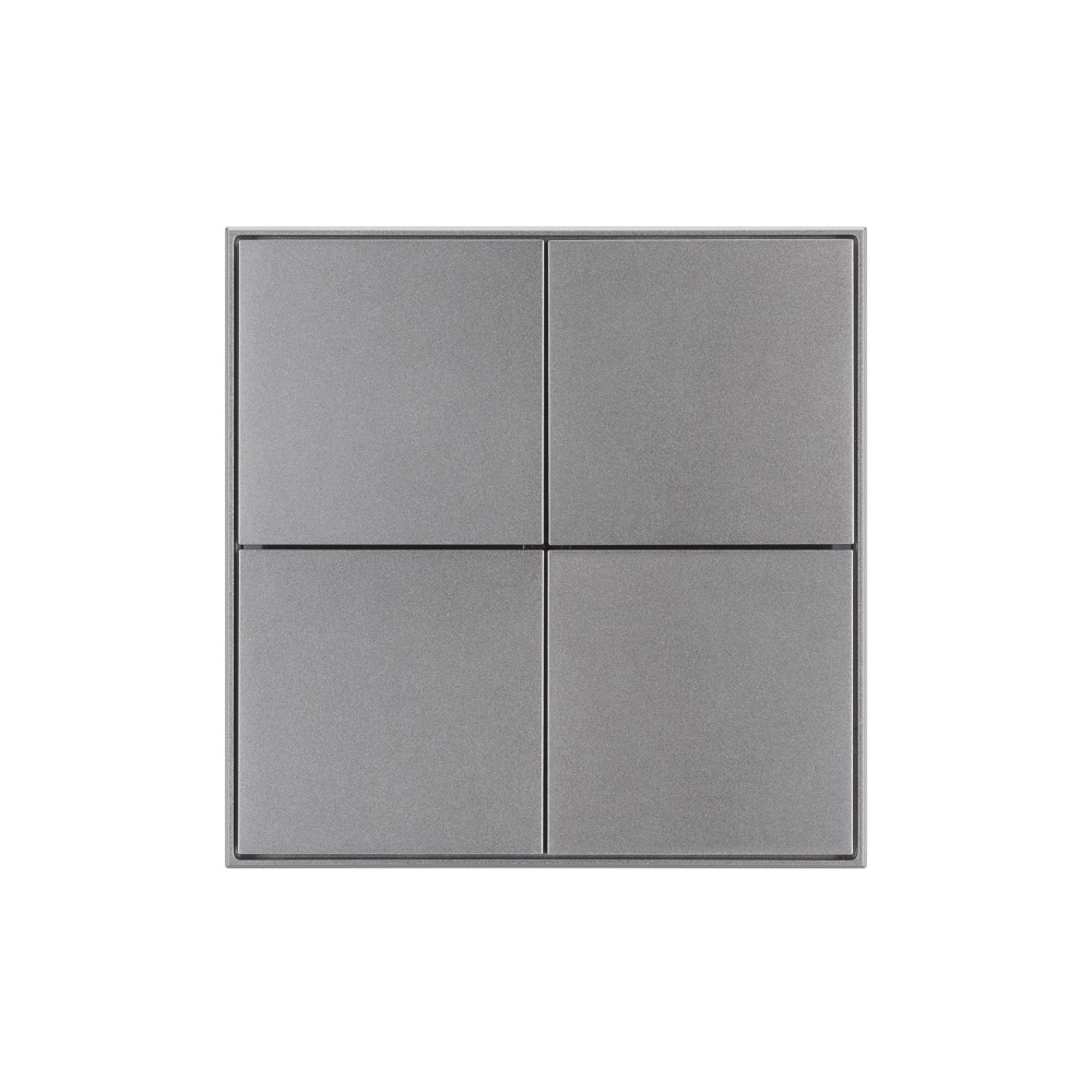 Универсальная многофункциональная встраиваемая настенная панель для систем KNX. 4 рокерные клавиши, 1 клавиша может выполнять функции 2-х клавиш. Тонкая рамка, материал - алюминий, отклик вибрацией, светодиодная индикация. Цвет корпуса - серый. Питание от шины KNX DC 21-30V. Габариты 86x86x33 мм.