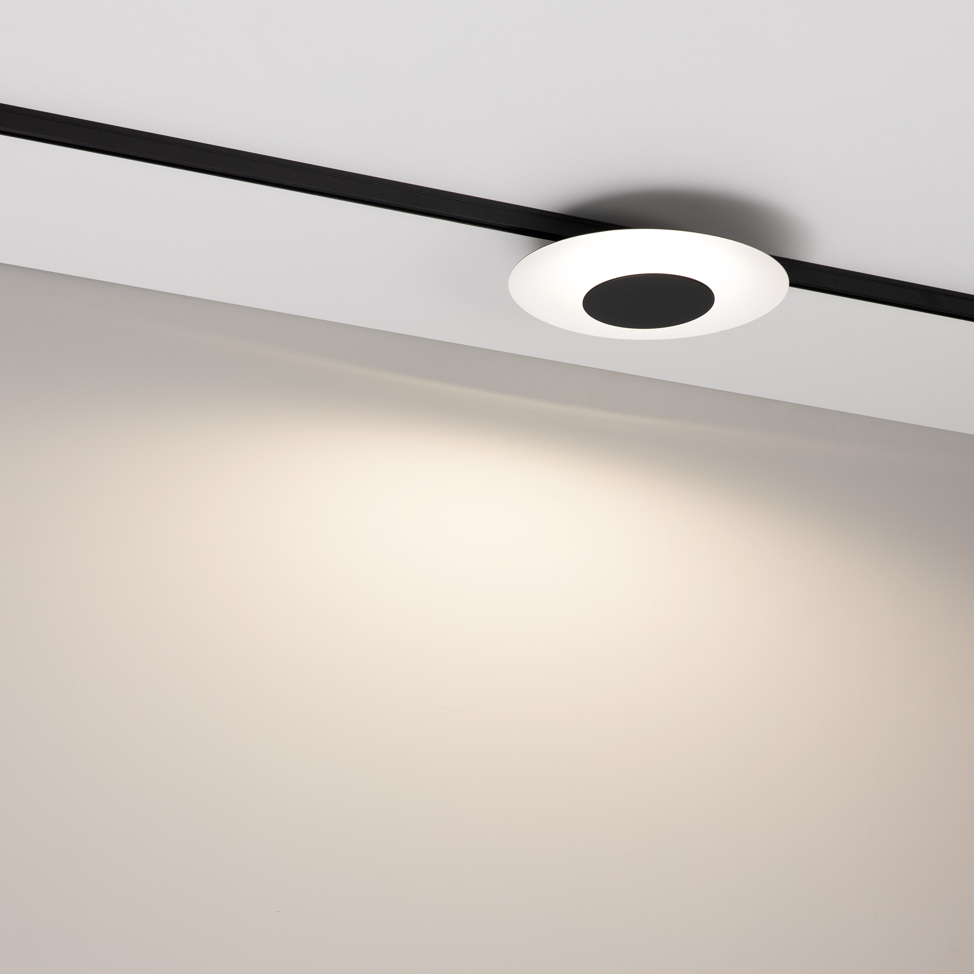 Светильник для магнитных треков MAG-MICROCOSM шириной 11 мм. Мощность 7 Вт, св. поток 226 лм, 33 лм/Вт, дневной 4000 K, CRI>92, угол 150°, напряжение питания 24 В. Черный фигурный корпус из алюминия, экран поликарбонат, степень защиты IP20. Габариты общие Ø170 х 37,3 мм. Габариты светового модуля Ø80,3 х 25,7 мм. Габариты отражателя Ø170 x 18,4 мм. Габариты адаптера 110 х 5 х 11,6 мм. Монтаж на трек MICROCOSM. Пульсация <1%.