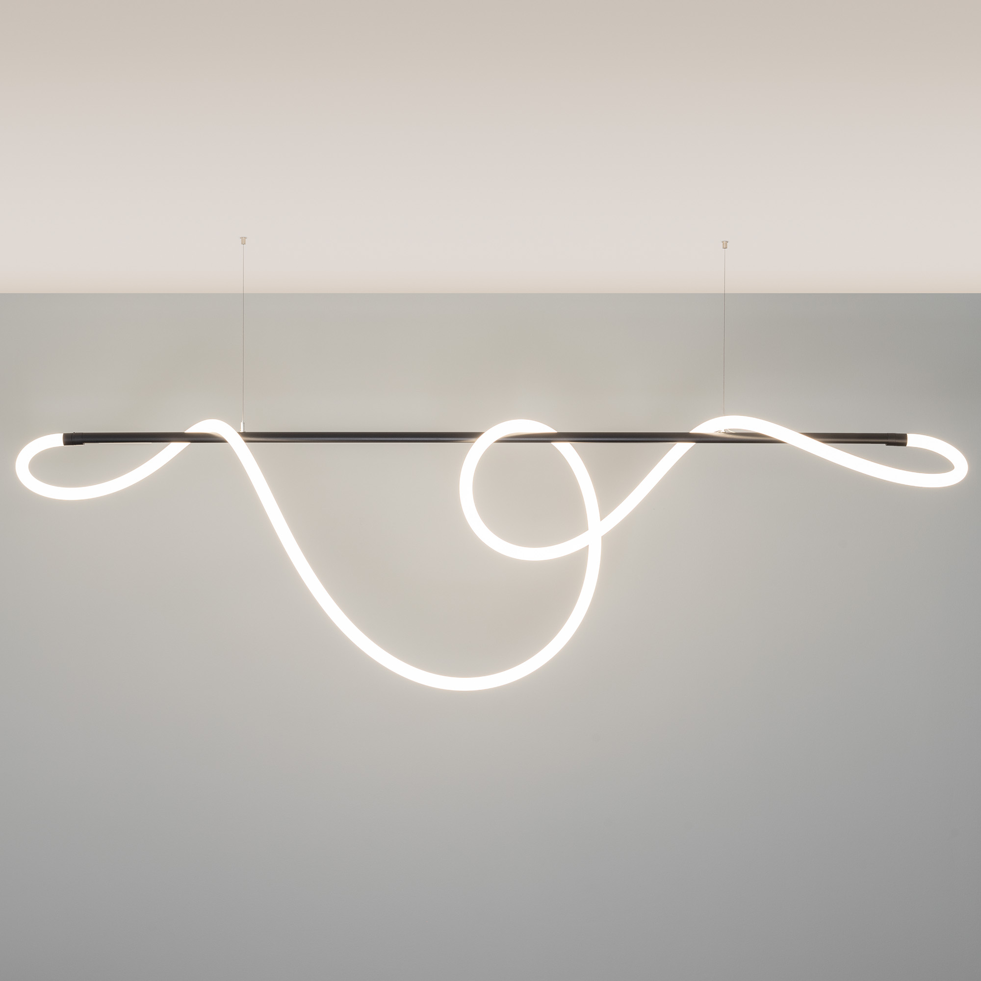 Подвесной светильник. Мощность 70 Вт, св. поток 4700 лм, 67 лм/Вт, дневной 4000 K, CRI>90, угол 360°, напряжение питания 230 В. Матовый белый фигурный корпус из силикона. Размер: диаметр 30 мм, длина 5000 мм. Монтаж на магнитный трек FLEX. Комплектующие: 021181(1) -1шт, 034063 - 2шт, 034062 - 1шт, 035391 - 1шт, 035385 - 1шт, 035388 - 1шт, коробка 035707, БП 027836.