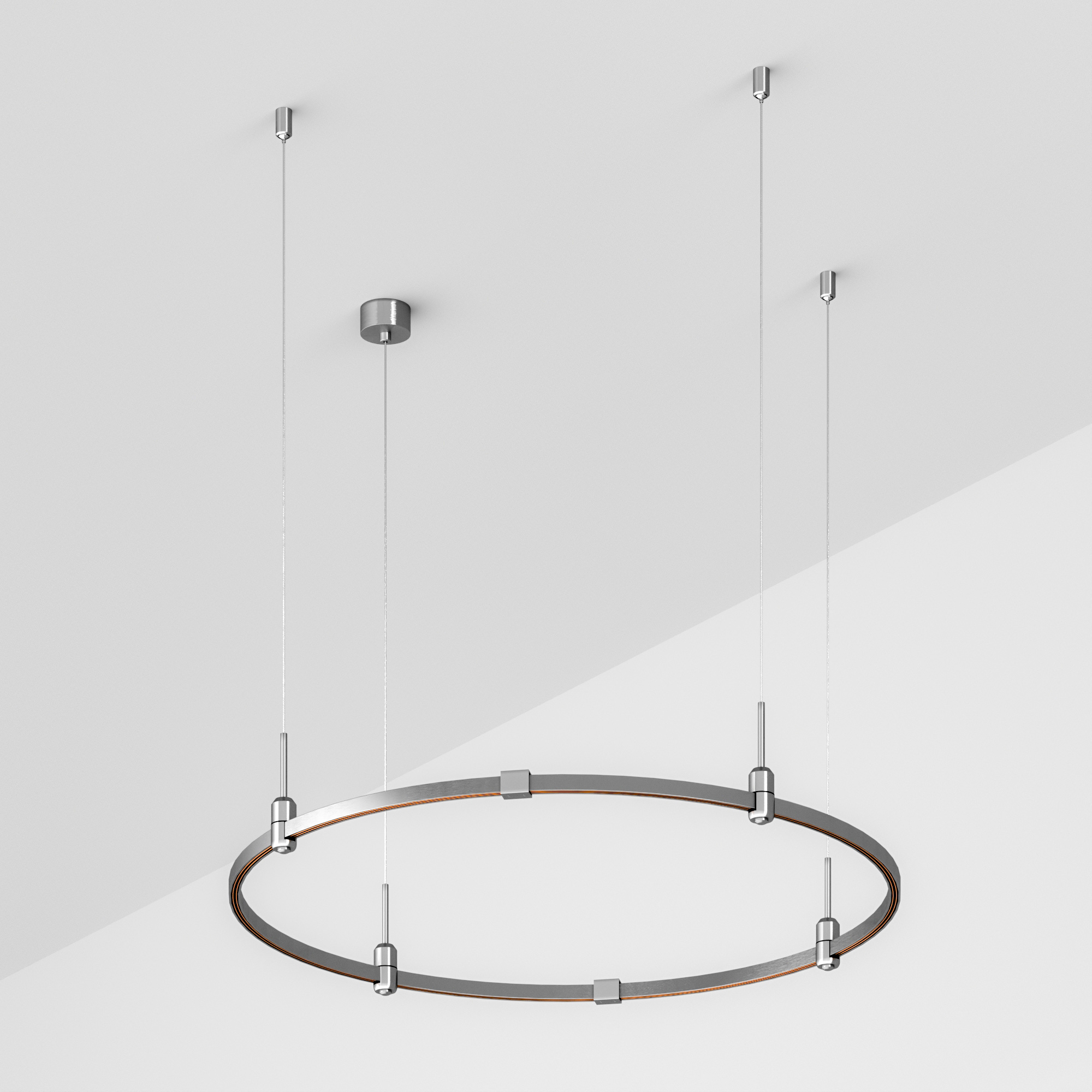 Подвесная конструкция APRIORI, форма круг. В комплекте треки с аксессуарами и гибкими подвесами. DC48V. Материал алюминий, цвет титан. Размер: диаметр 1000мм, высота 22мм. Светильники и источники питания приобретаются отдельно.