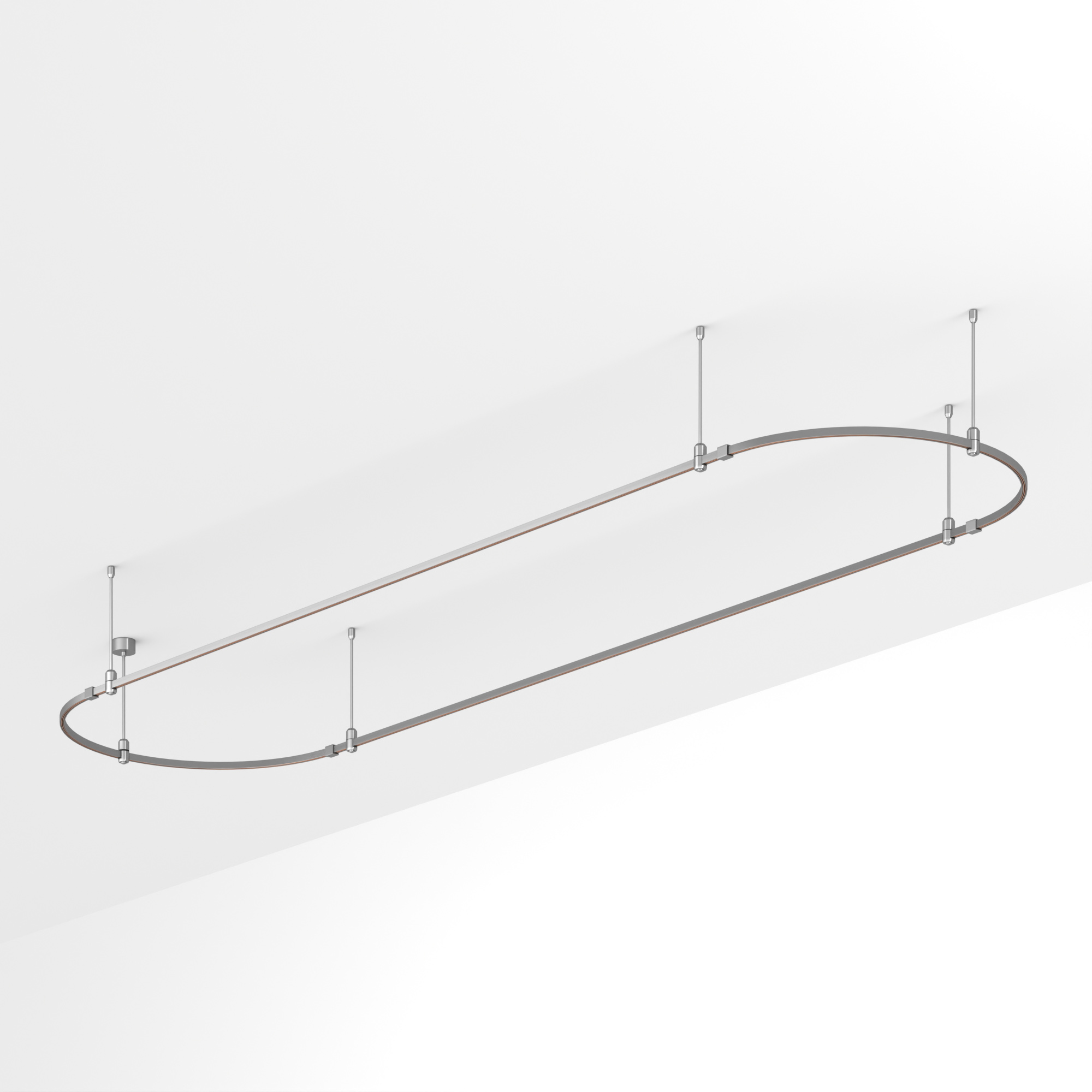 Подвесная конструкция APRIORI, форма овал. В комплекте треки с аксессуарами и жесткими подвесами длиной 400мм. DC48V. Материал алюминий, цвет титан. Размер ДxШxВ: 4000x1000x22мм. Светильники и источники питания приобретаются отдельно.
