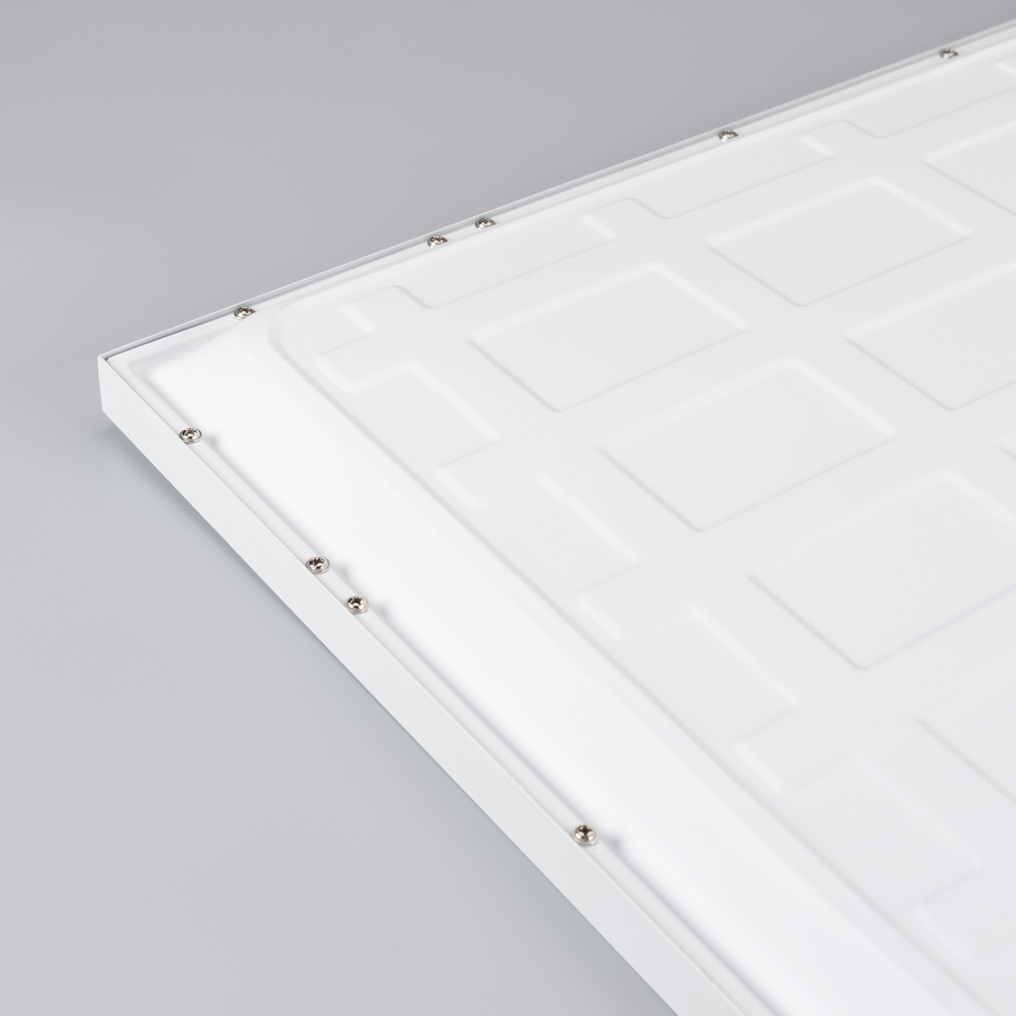 Светодиодная безрамочная панель с прямой засветкой (backlit). Мощность 40 Вт, св. поток 4000 лм, 100 лм/Вт, теплый 3000 K, CRI>90, угол 120°, напряжение питания 230 В. Белый квадратный корпус из алюминия, задняя крышка - сталь, экран PS, степень защиты IP40. Размер: длина 597 мм, ширина 597 мм, высота 38 мм. Монтаж встраиваемый, установочное отверстие длина 575 мм, ширина 575 мм. Драйвер 33-40 В, 1000 мА, пульсация <1%.
