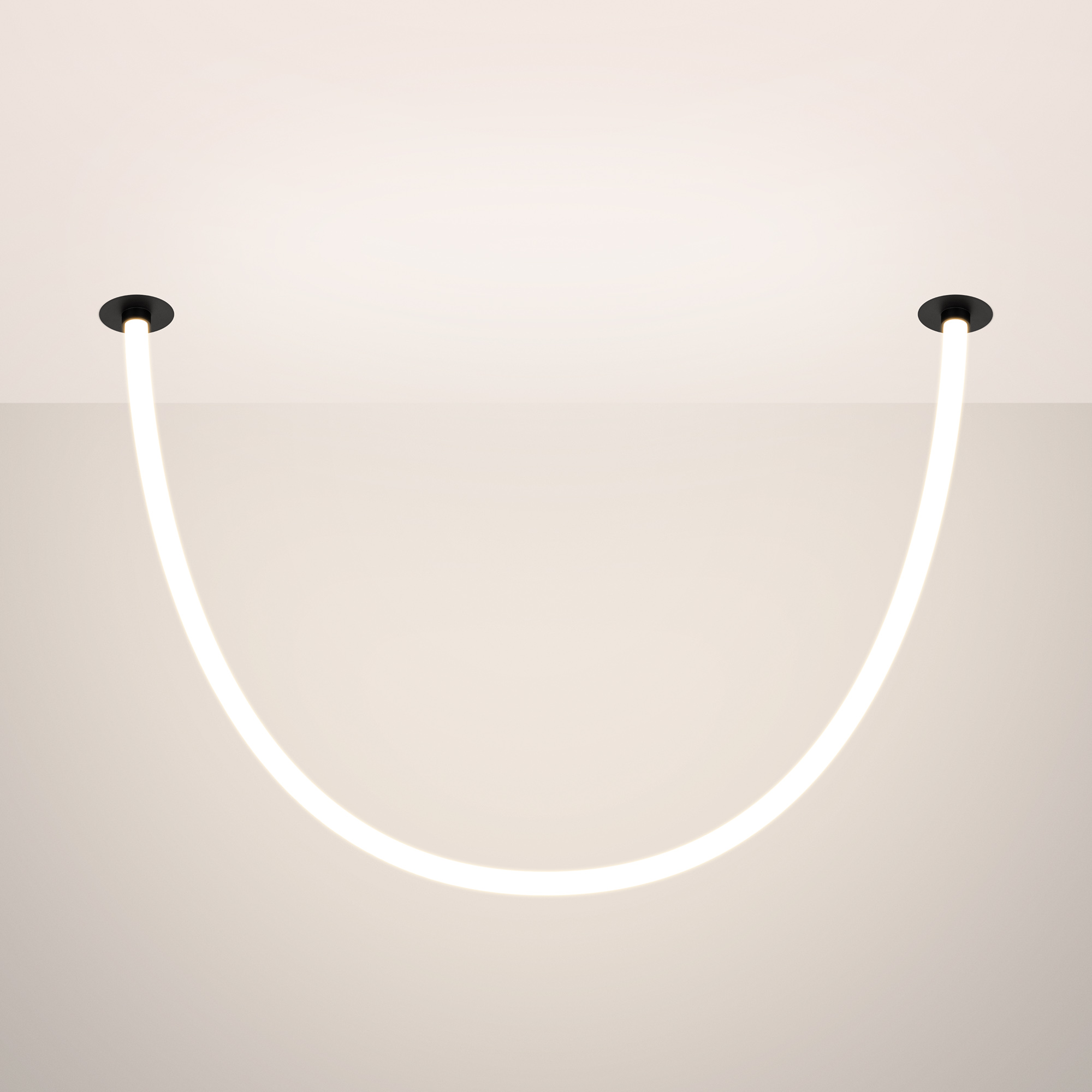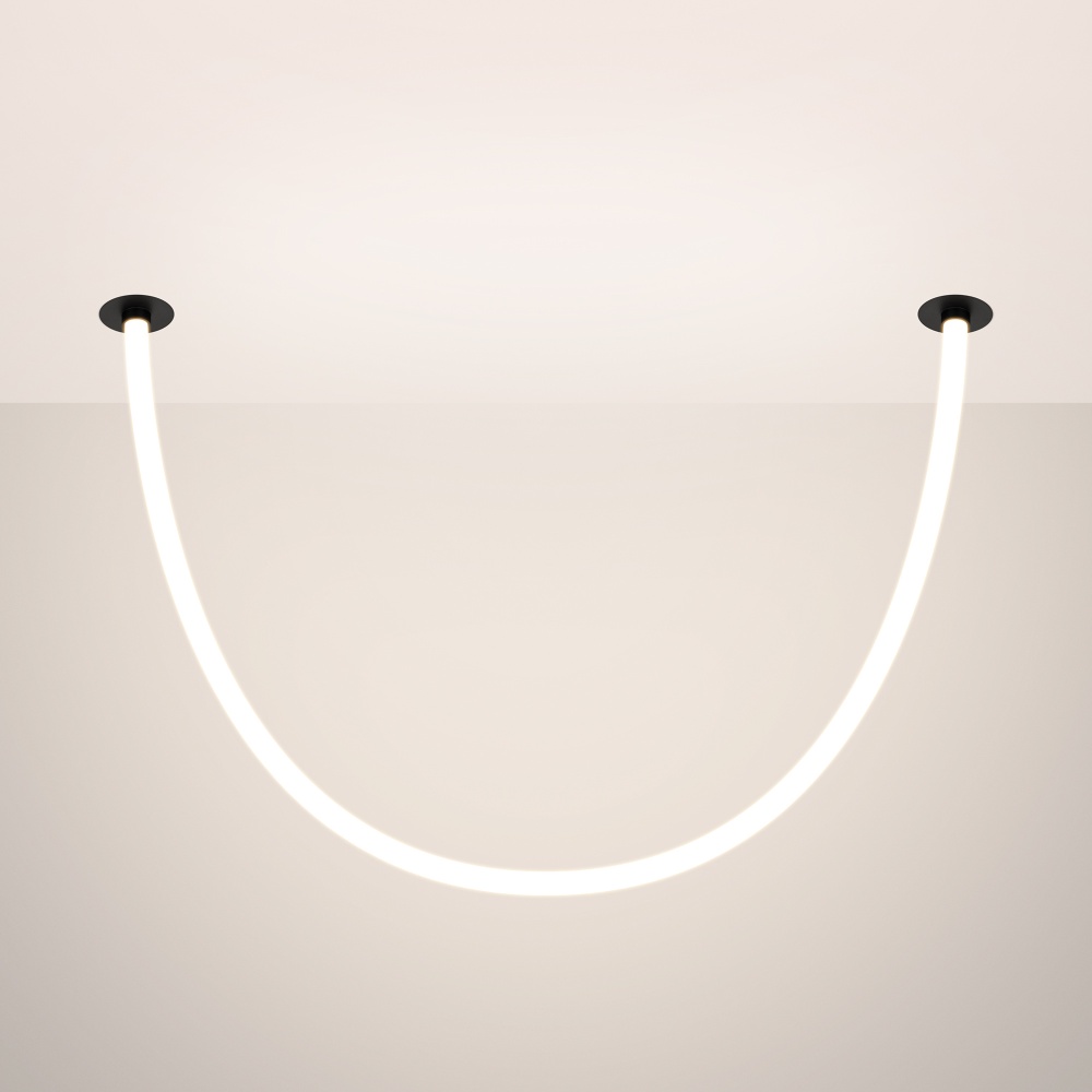 Подвесной светильник. Мощность 18 Вт, св. поток 980 лм, 54 лм/Вт, тёплый 3000 K, CRI>90, угол 360°, напряжение питания 230 В. Черный круглый корпус из стали, силиконовая герметичная лента, степень защиты IP20. Размер: диаметр утапливаемой части чаши 64 мм, высота чаши с утапливаемой частью без вывода под неон 40 мм, общая высота чаши 57 мм, диаметр чаши с фланцем 100 мм, диаметр силиконовой герметичной ленты 18 мм, длина силиконовой герметичной ленты 1200 мм. Монтаж встраиваемый, глубина установки 55 мм, диаметр установочного отверстия 70 мм. Блок питания 24 В, 750 мА, пульсация <1%.